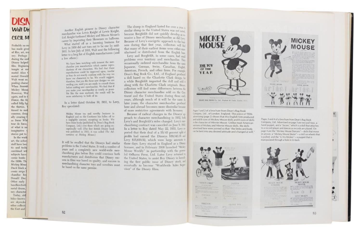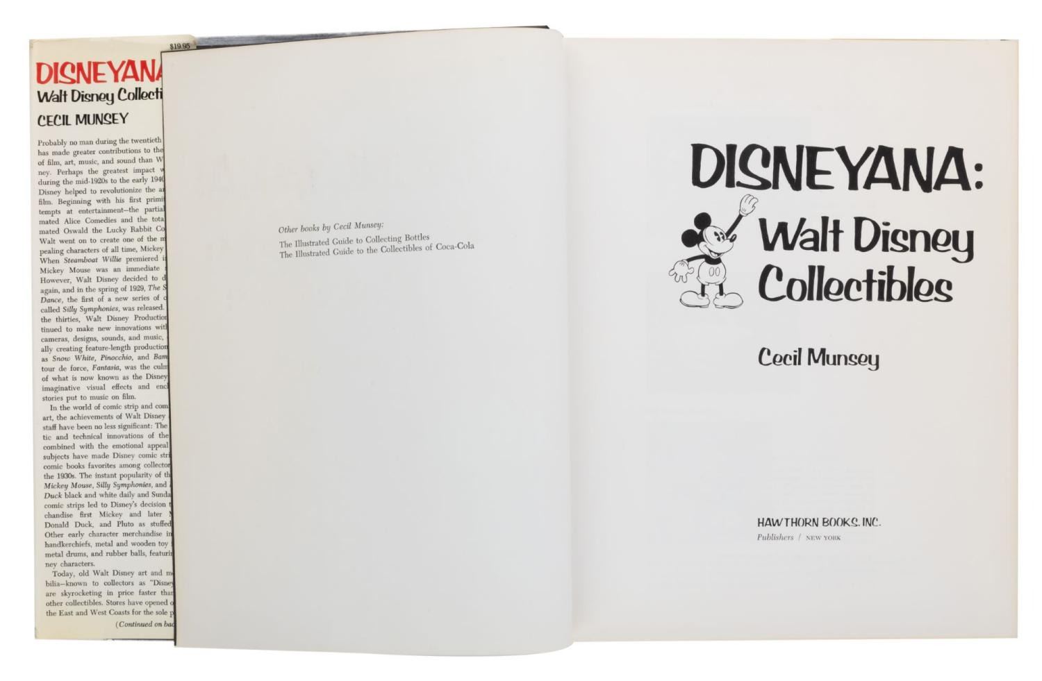 (Hawthorn Books Inc., 1974) A Disneyana: Walt Disney Collectibles book by Cecil Munsey. This 385-page book covers the history of Disney merchandise and collectibles from the 1920s to the 1970s. Measuring 8.75" x 11.25" the book is in good condition with minimal shelf wear, edge wear, scuffs and a small tear to the upper back of the slip cover.