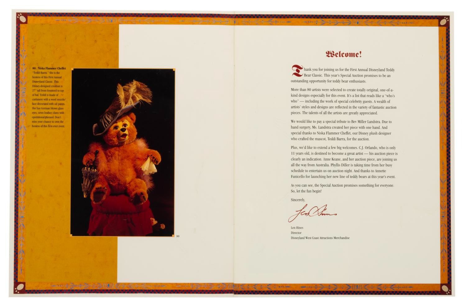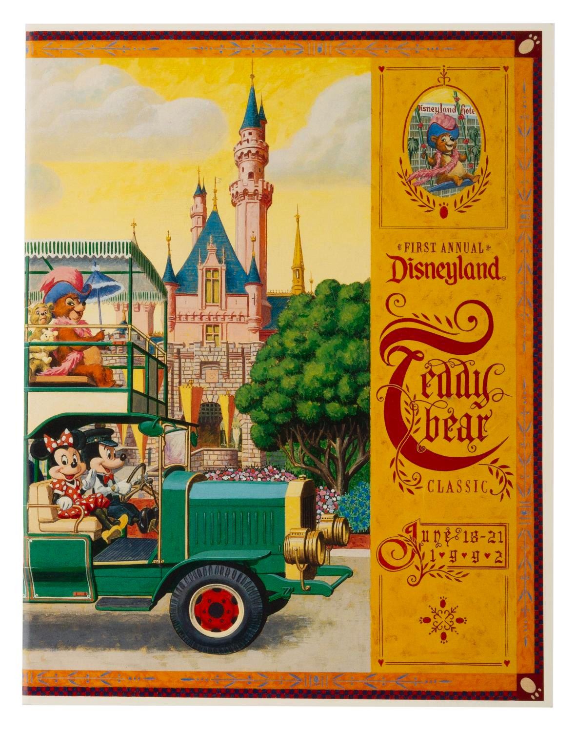 (Disneyland, 1992) A catalog for the first annual Disneyland Teddy Bear Classic, held at the Disneyland Hotel, June 18-21, 1992. Measuring 8.5" x 11", the catalog is in very good condition with light wear.