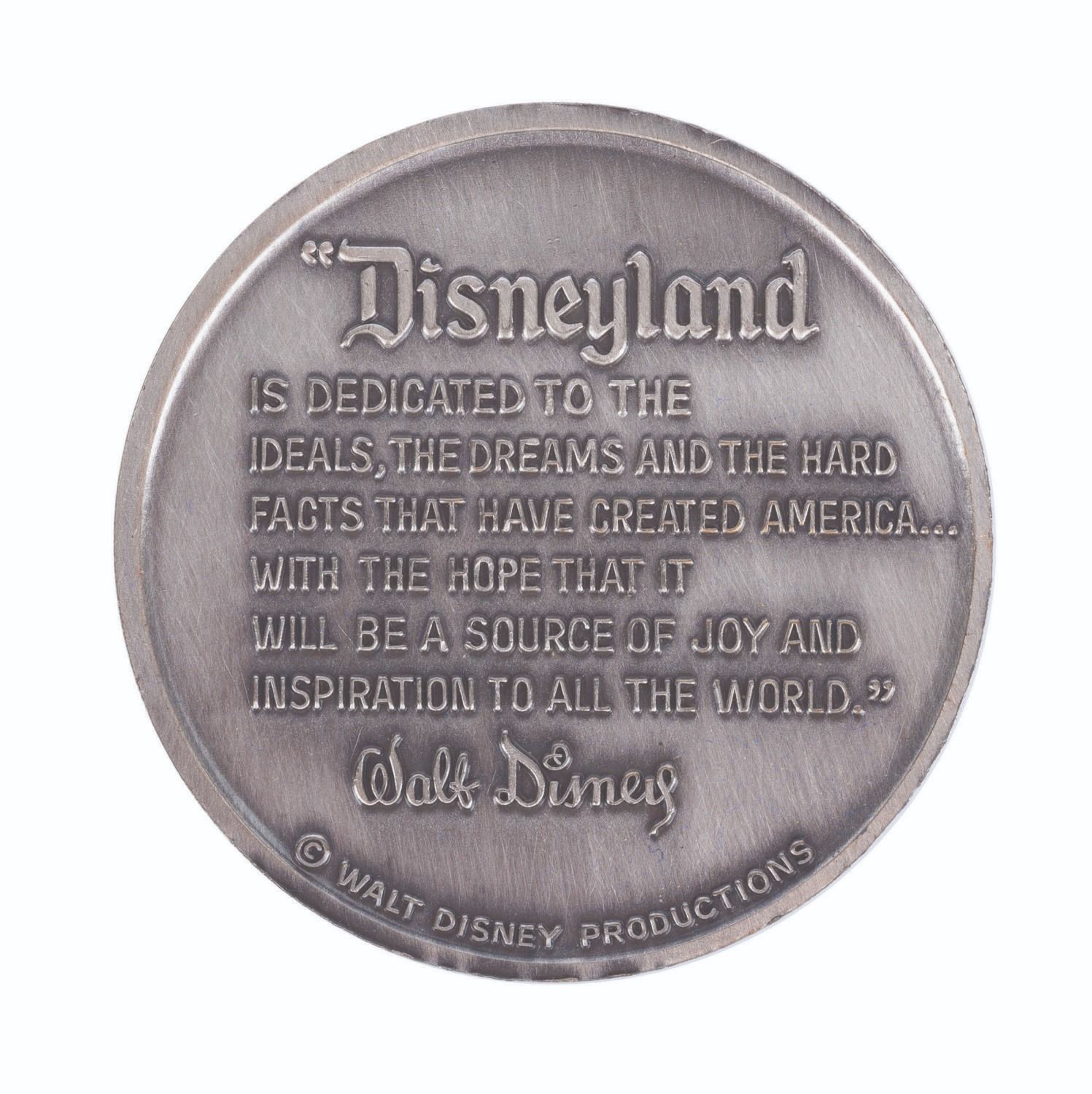 (Disneyland, 1980) A collectible coin commemorating the 25th anniversary of Disneyland. Measuring 1.5" in diameter, this collectible coin is in fine condition within its original 2.25"x2.25" box.