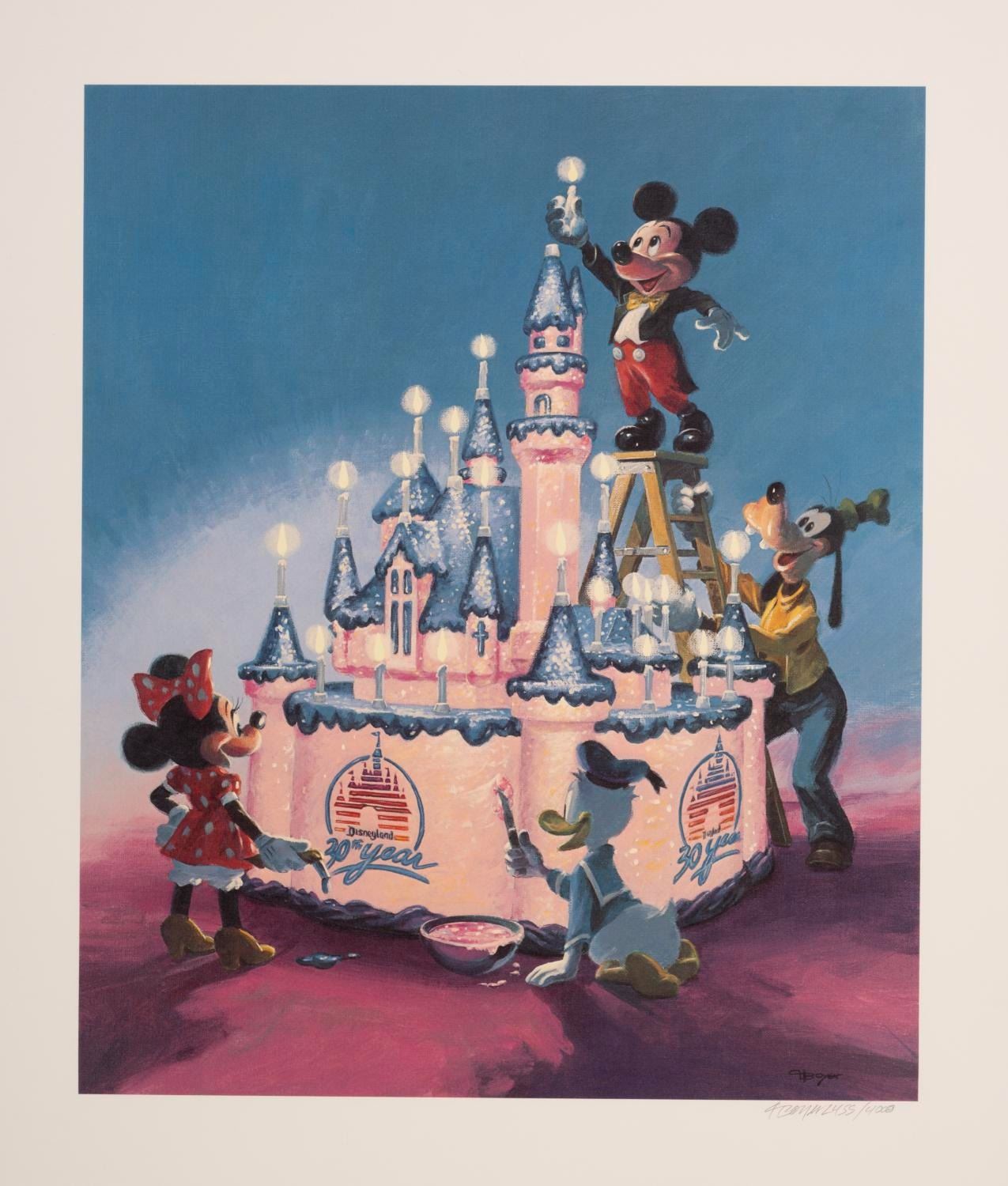 (Disneyland, 1985) A lithograph by Charles Boyer commemorating the 30th anniversary of Disneyland. Hand-signed by Boyer in graphite and numbered 2455/4000, the poster measures 24.5" x 21" and is in fine condition with slight edge wear.