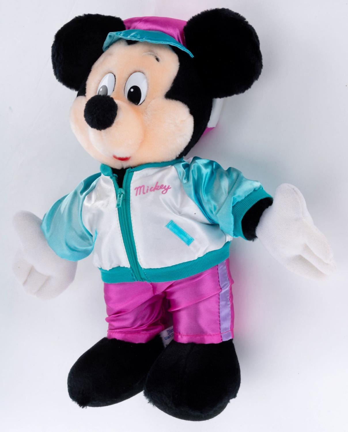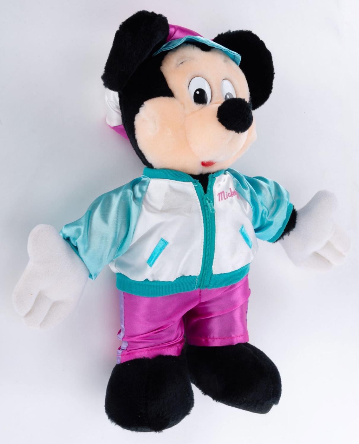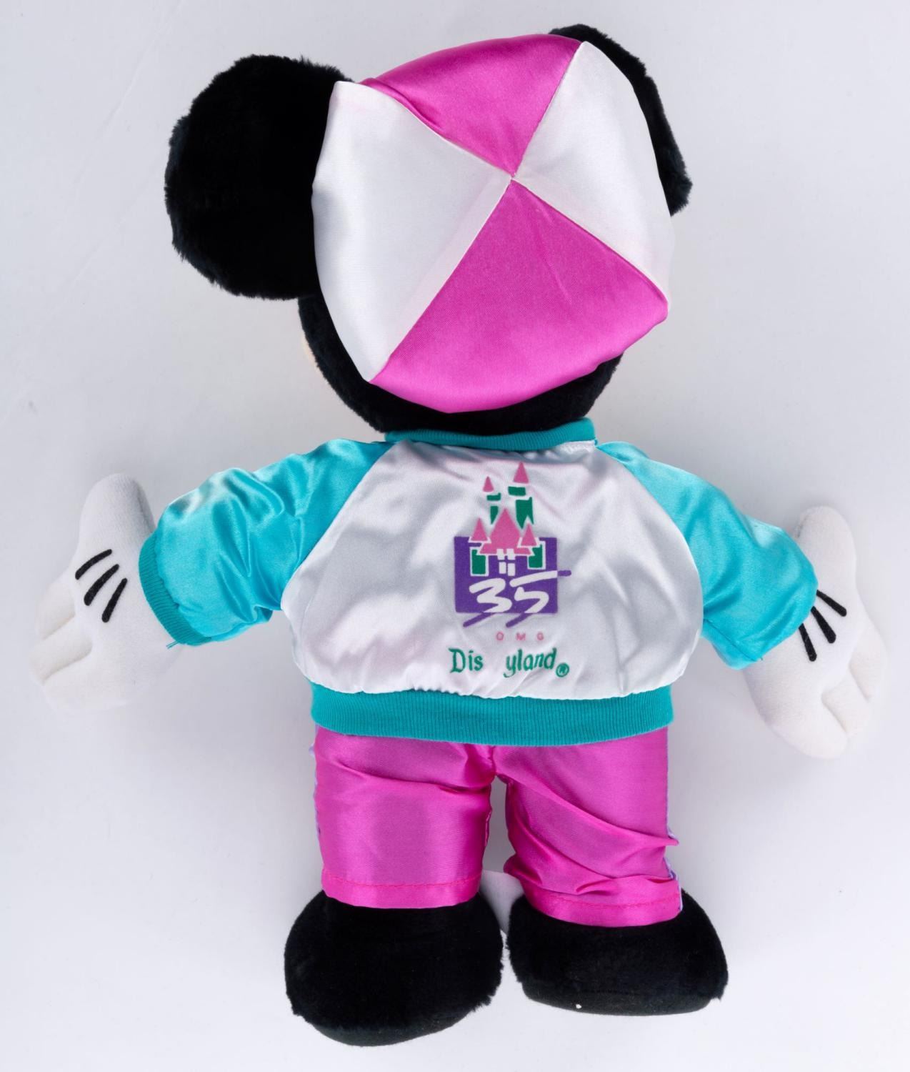 (Disneyland, 1990) A commemorative Mickey Mouse plush from the 35th anniversary of Disneyland. Mickey's jacket has the 35th anniversary logo printed on the back in faux embroidery. Measuring 14” tall, the plush is in good condition with minimal wear. Some of the lettering on the back is missing from age.
