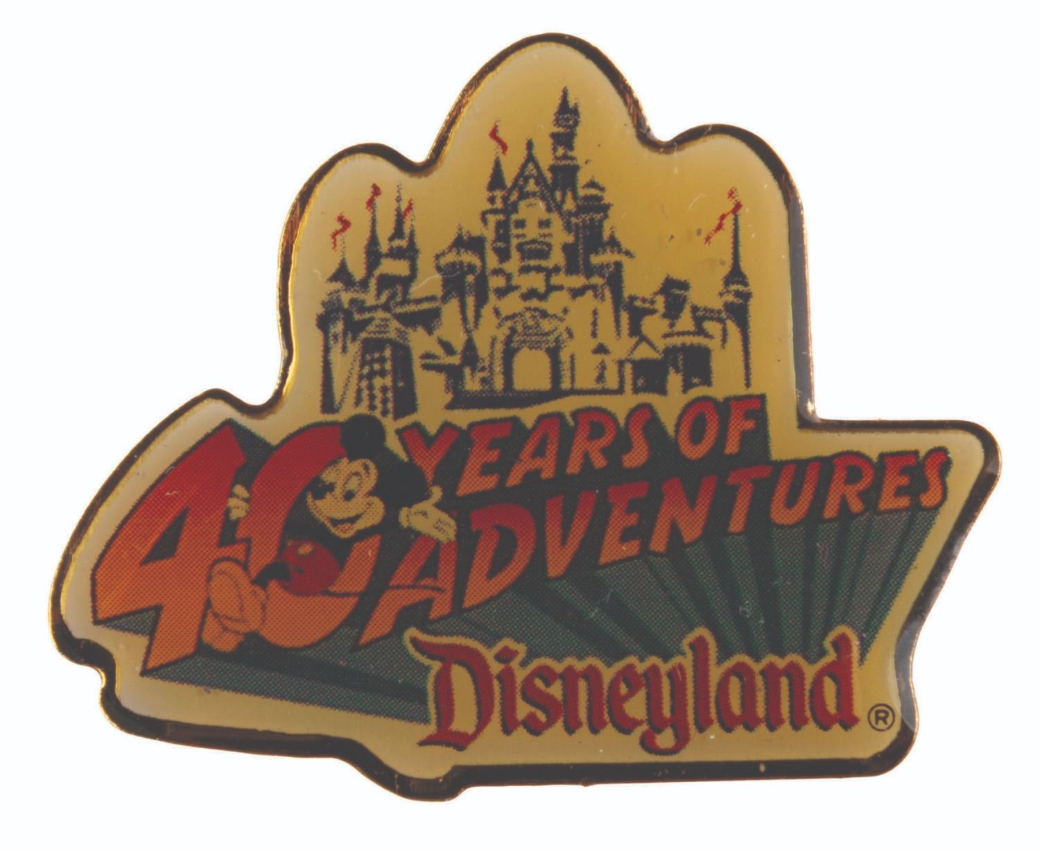(Disneyland, 1995) A 40 Years of Adventure Cast Member-exclusive pin, released in a limited edition of 1000. Measuring 1" x 1.5", the pin displays in very good condition with scratches and color shift from age.