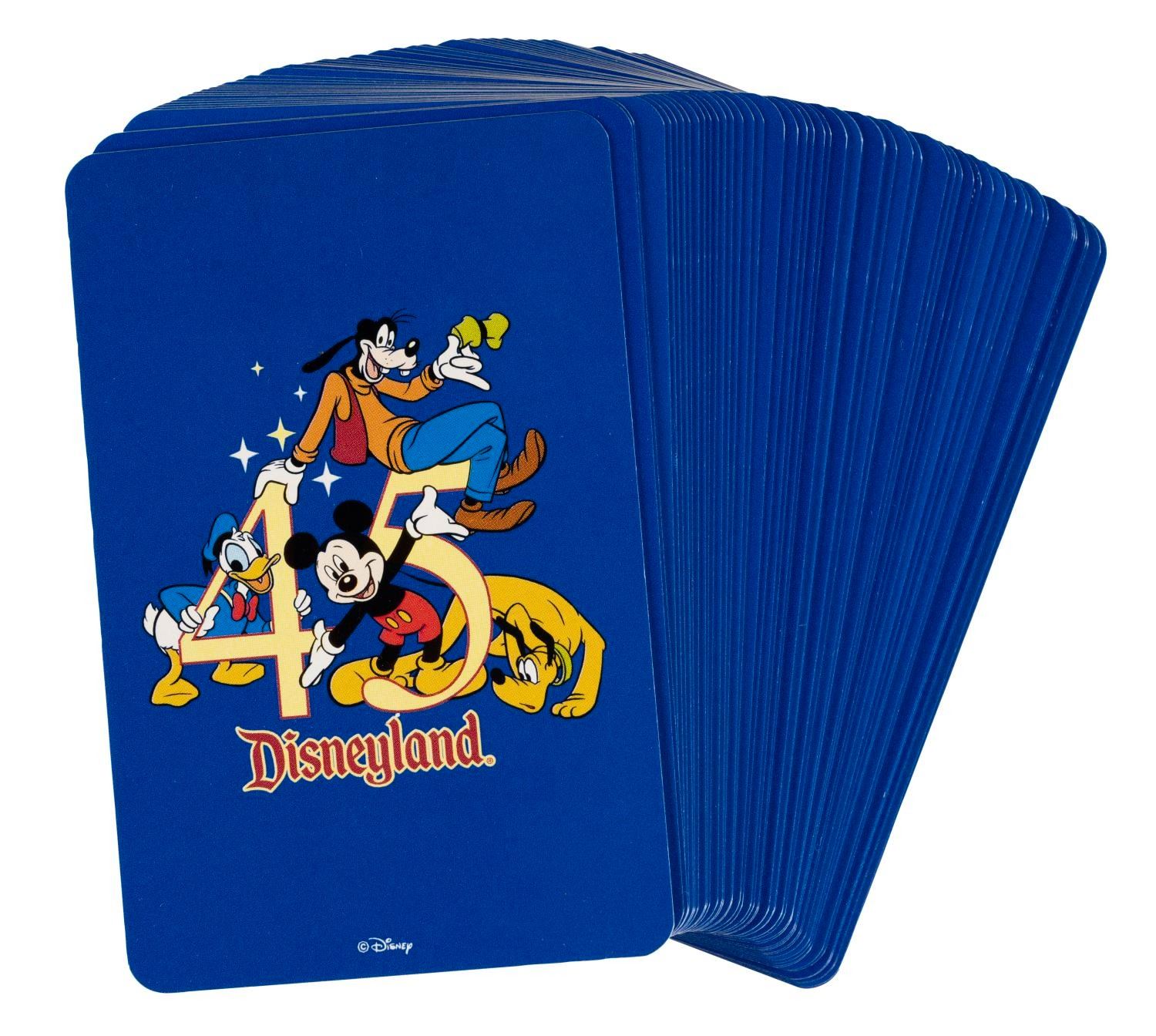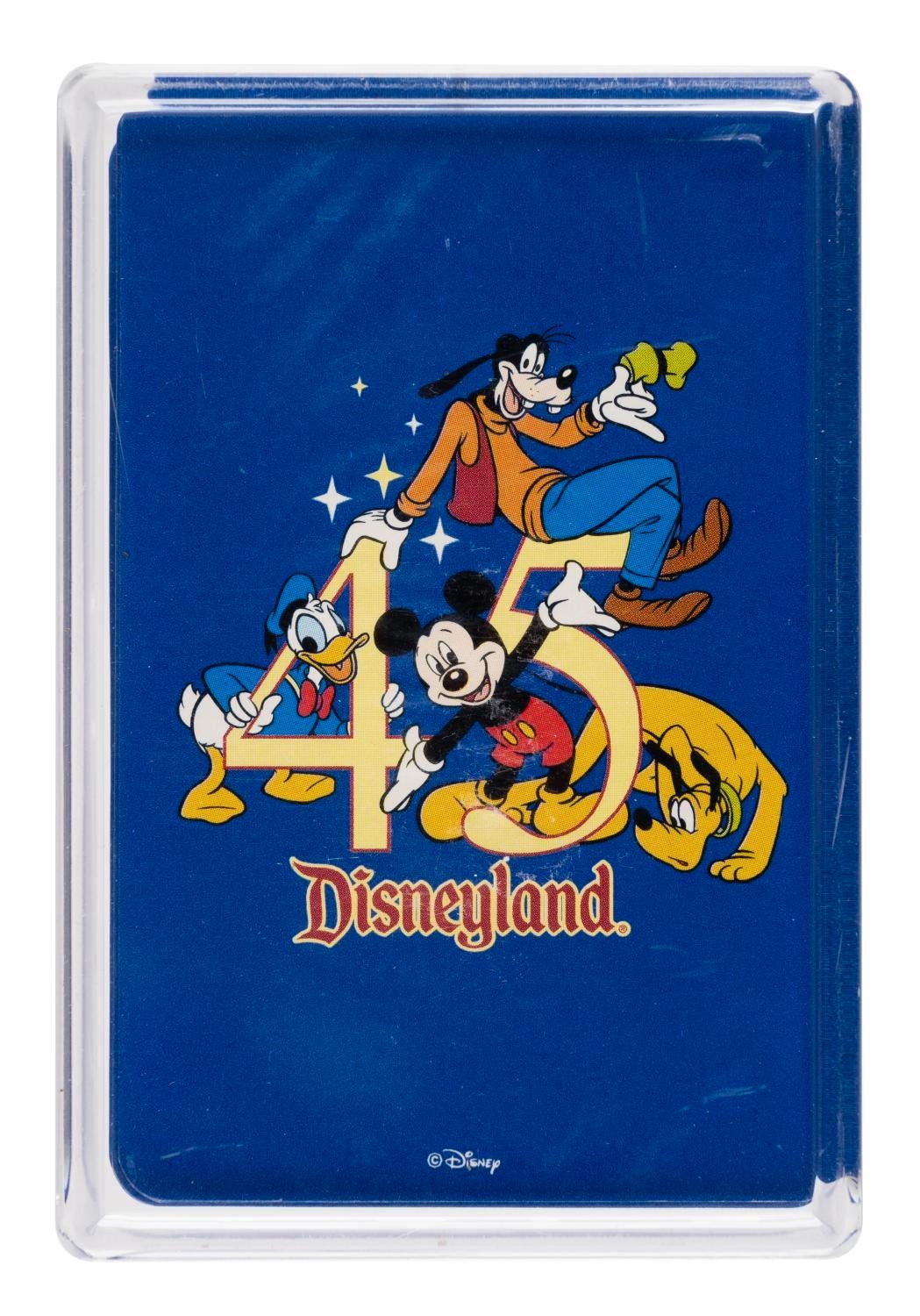 (Disneyland, 2000) A souvenir deck of cards commemorating the 45th anniversary of Disneyland. Measuring 2.25” x 3.5”, this set of cards is in fine condition in its original 2.5” x 3.75” plastic box.