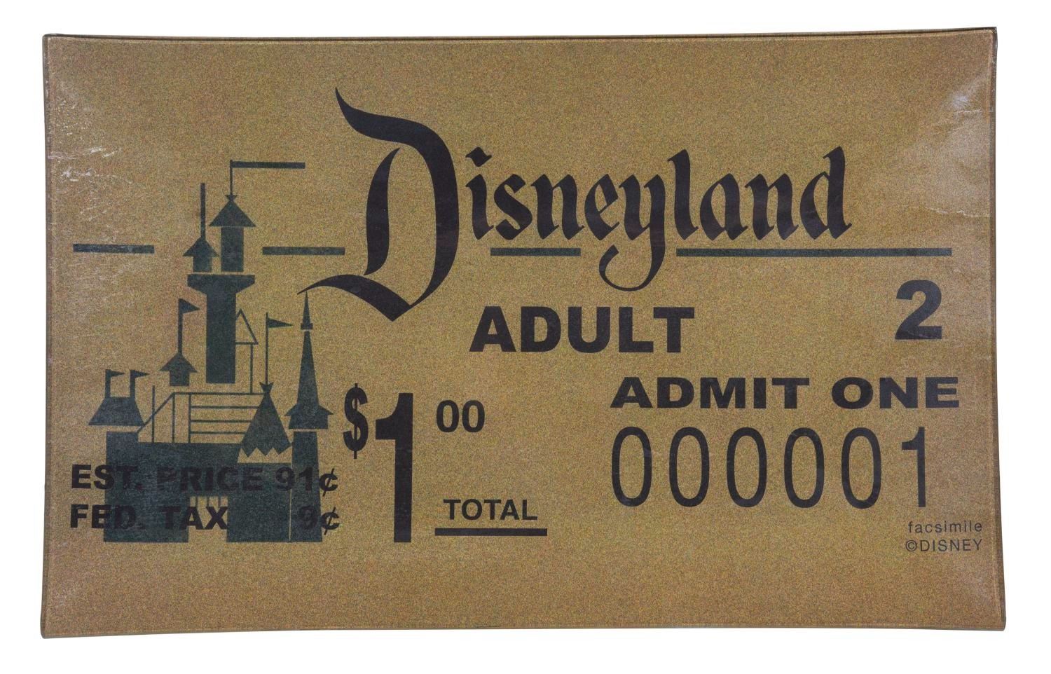 (Disneyland, 2005) A decorative plate inspired by the first Disneyland ticket and celebrating "50 Years of Magical Memories." Measuring 13.75"x8.75" this collectible is in very good condition, exhibiting faint wear, and retains its original box.