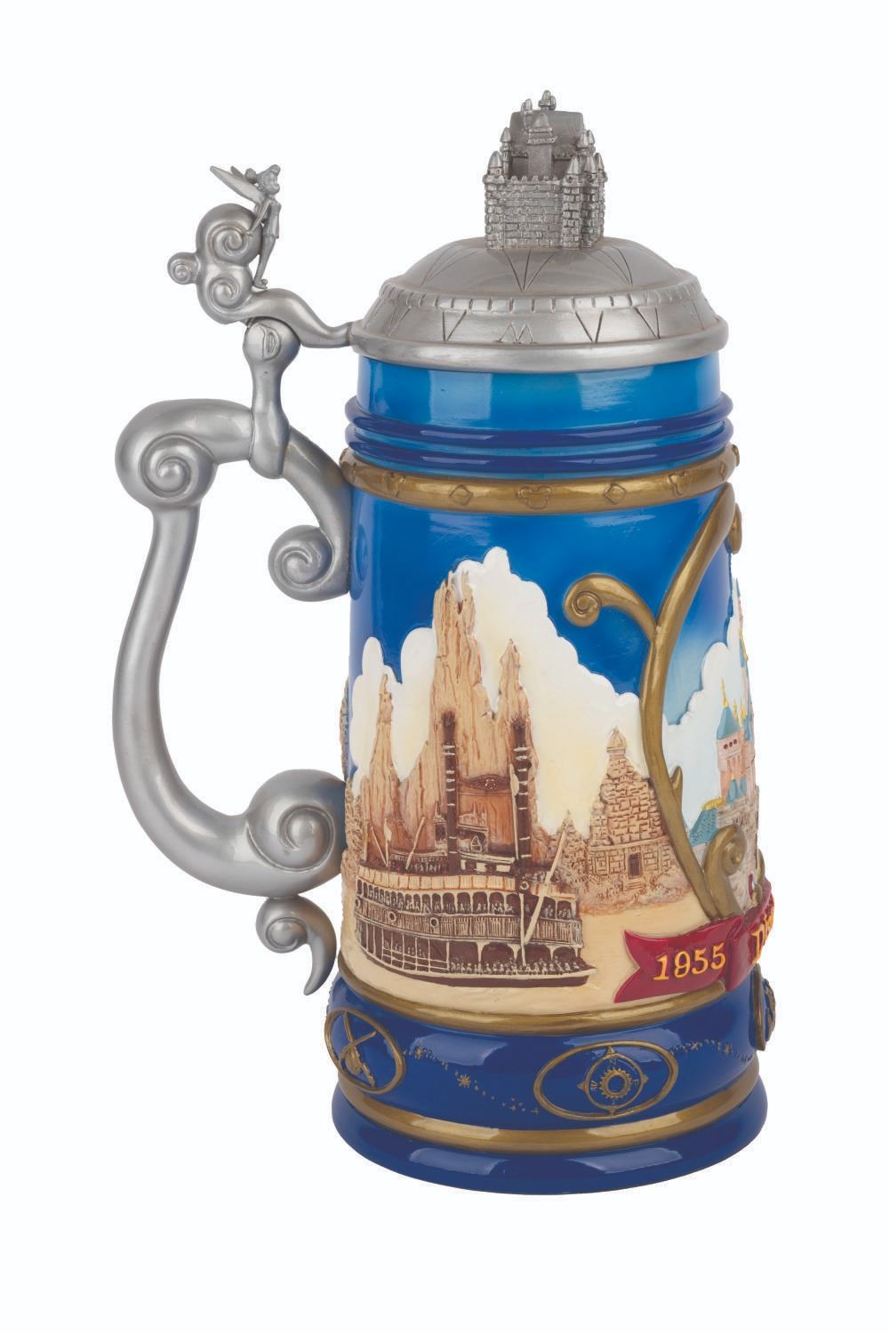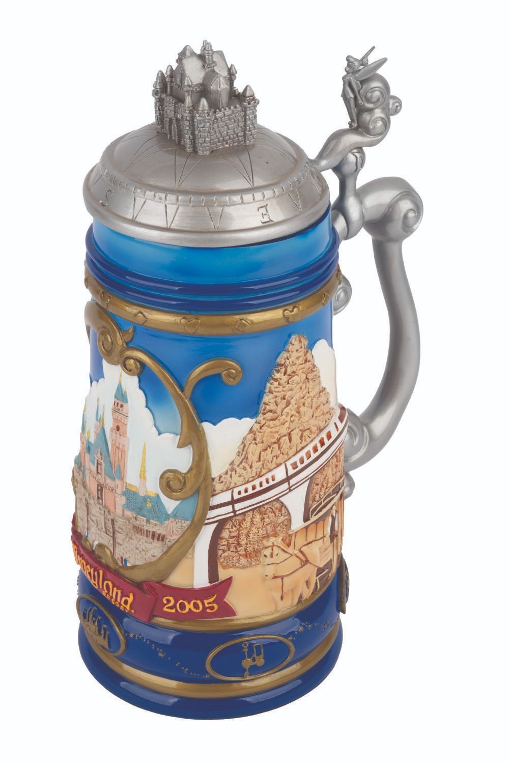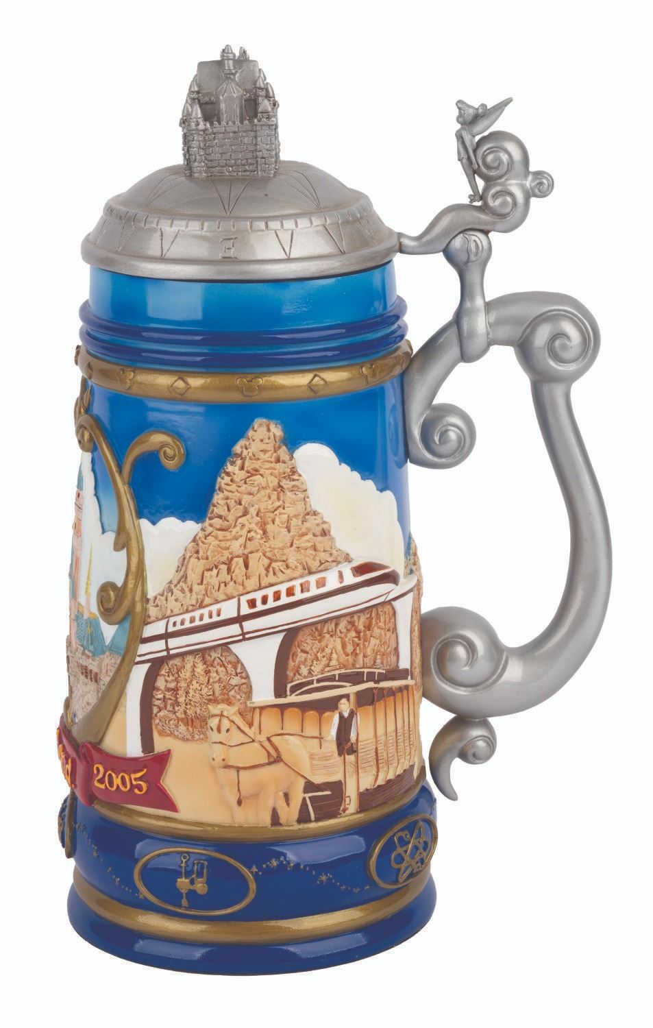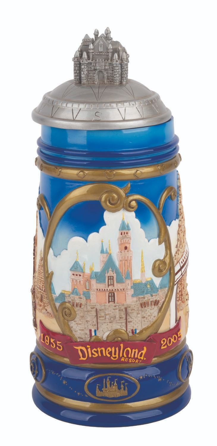 (Disneyland, 2005) A Disneyland Resort 50th Anniversary Stein. This large stein celebrates "50 Years of Magical Memories" with a relief of Big Thunder Mountain, the Matterhorn, and Sleeping Beauty Castle, and was issued in an edition of 500. Measuring 9.75" tall and 6" wide, this decorative resin stein is in fine condition.