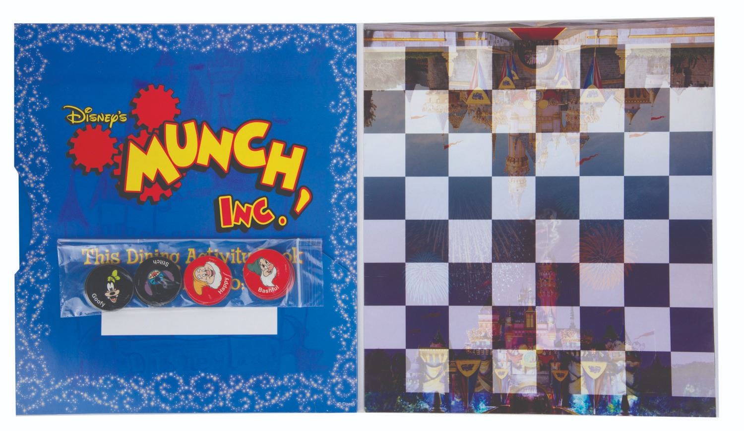 (Disneyland, 2005) A Disneyland “Happiest Homecoming On Earth” Activity book with a magnetic checker board, released for the Park’s 50th anniversary. Measuring 10.5" x 11.5", the book is in very good condition with light marks and creases from use.