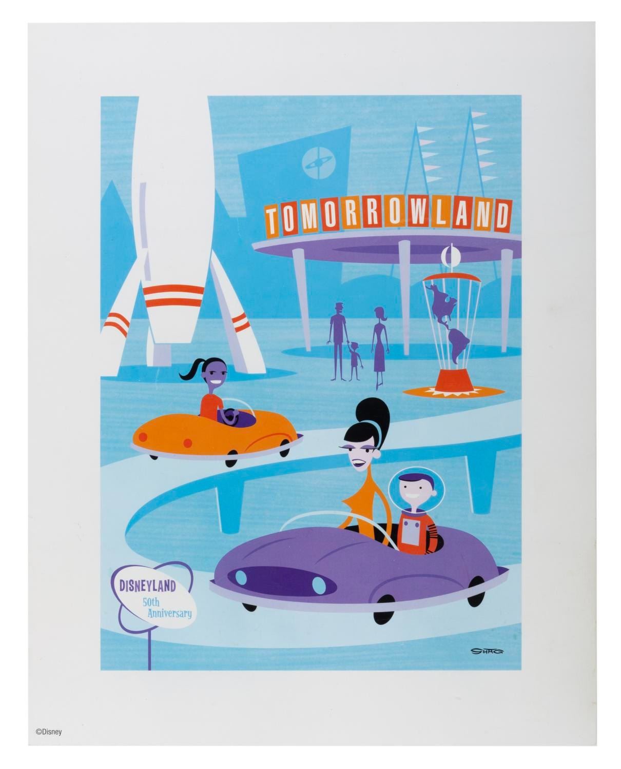 (Disneyland, 2005) A Tomorrowland print by SHAG from the Original Lands Collection, created for the 50th Anniversary of Disneyland. Measuring 11 " x 14 ", the print is in very good condition with very light handling wear including a 0.75 " hairline crease.