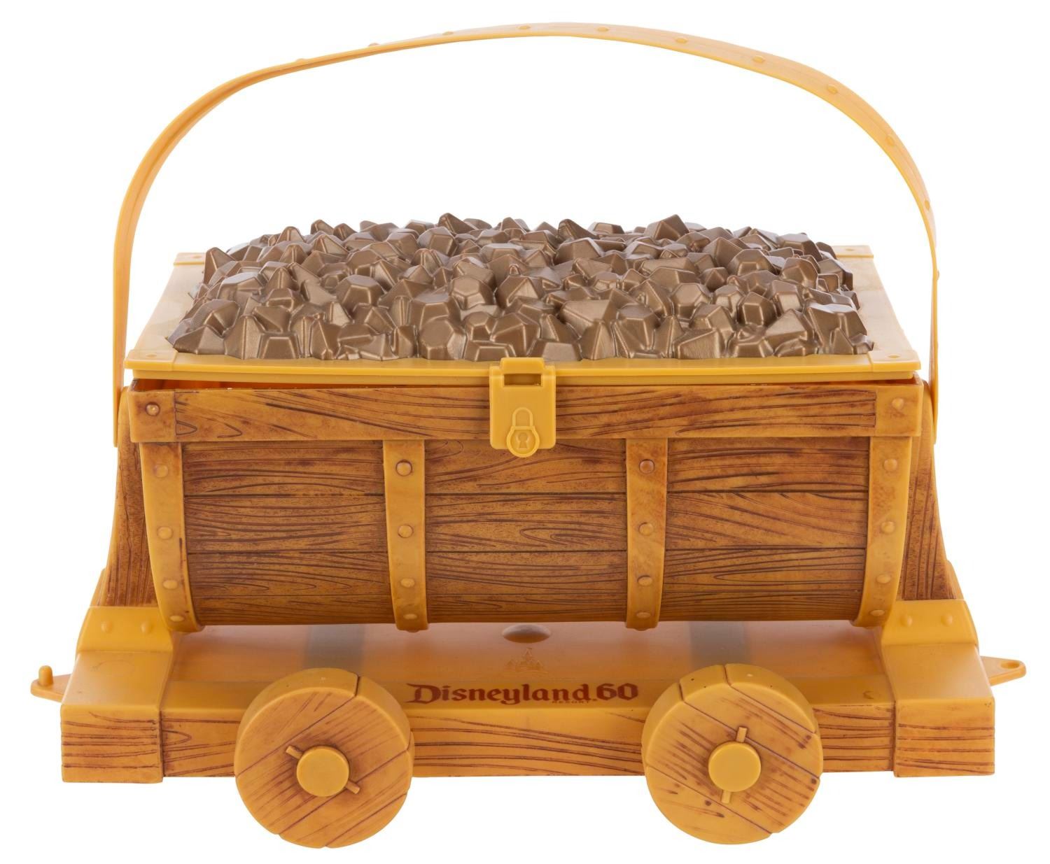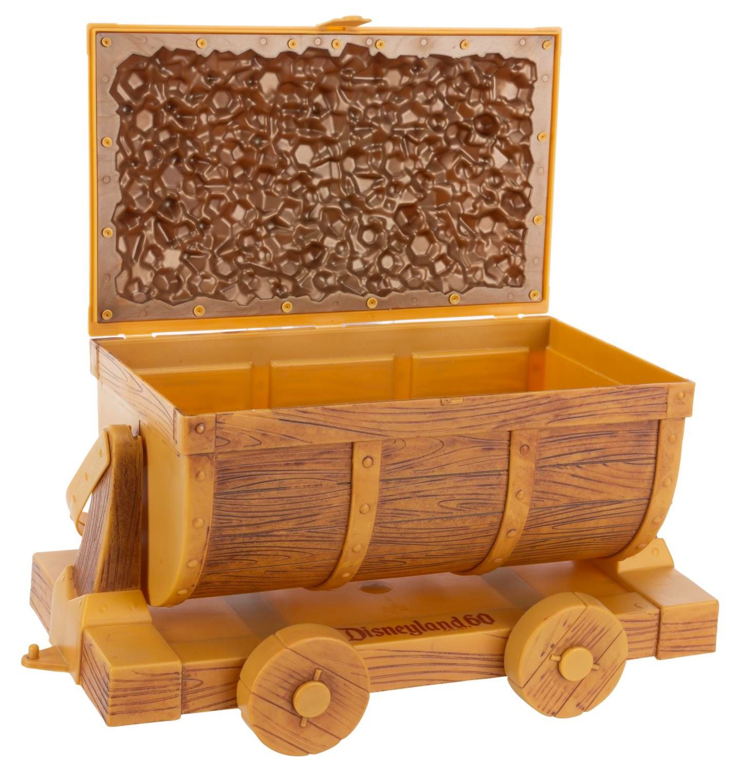 (Disneyland, 2015) A “Snow White and the Seven Dwarfs" mine cart popcorn bucket, released for Disneyland’s 60th anniversary Diamond Celebration. Measuring 7" x 11" x 6.5" tall, the rolling plastic popcorn bucket is in fine condition.
