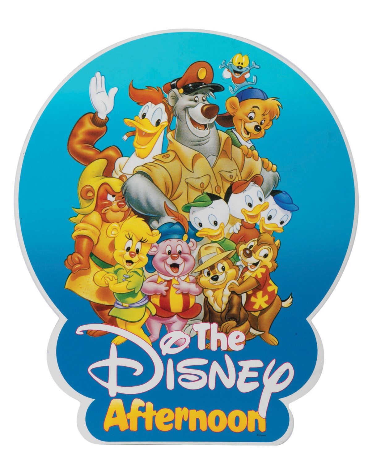 (Disneyland, 2019) "The Disney Afternoon" Photo Opportunity prop from "Disneyland After Dark 90s Night." This prop was used for specific photo opportunities with vintage Special Disney Characters at the ticketed event. Measuring 30"x23", the acrylic piece is in very good condition, with little wear from original Park use and guest handling.