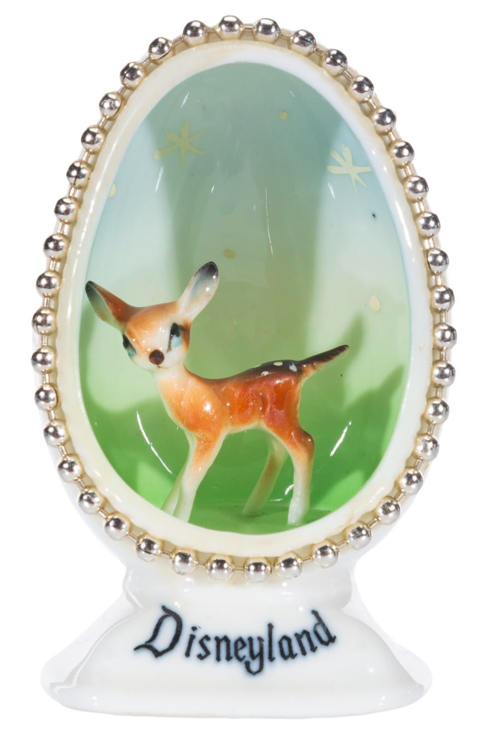 (Disneyland, 1950s-60s) A bone china egg souvenir of Disneyland featuring Bambi. Measuring 2.75” x 1.75” x 1.25”, the figurine is in fine condition.