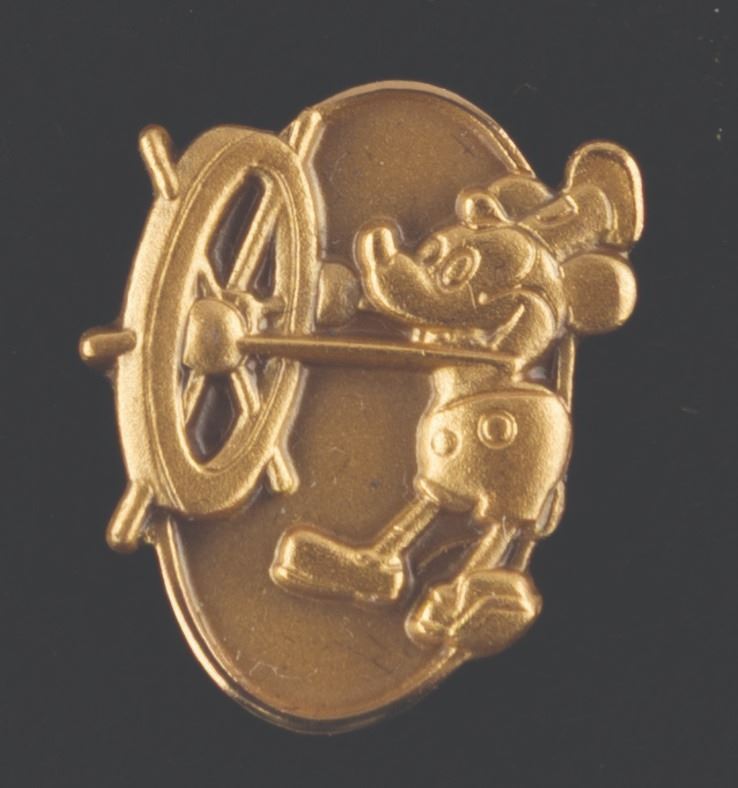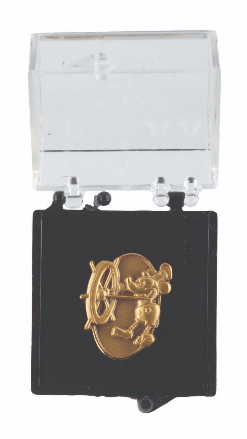 (Disneyland, 1980s-2000s) A brass gold-toned Disney Parks Cast Member One-Year Service Pin. Cast Members earn this after working for the Disney Company for a full year. Measuring under 0.75", the pin is in fine condition in its original box.