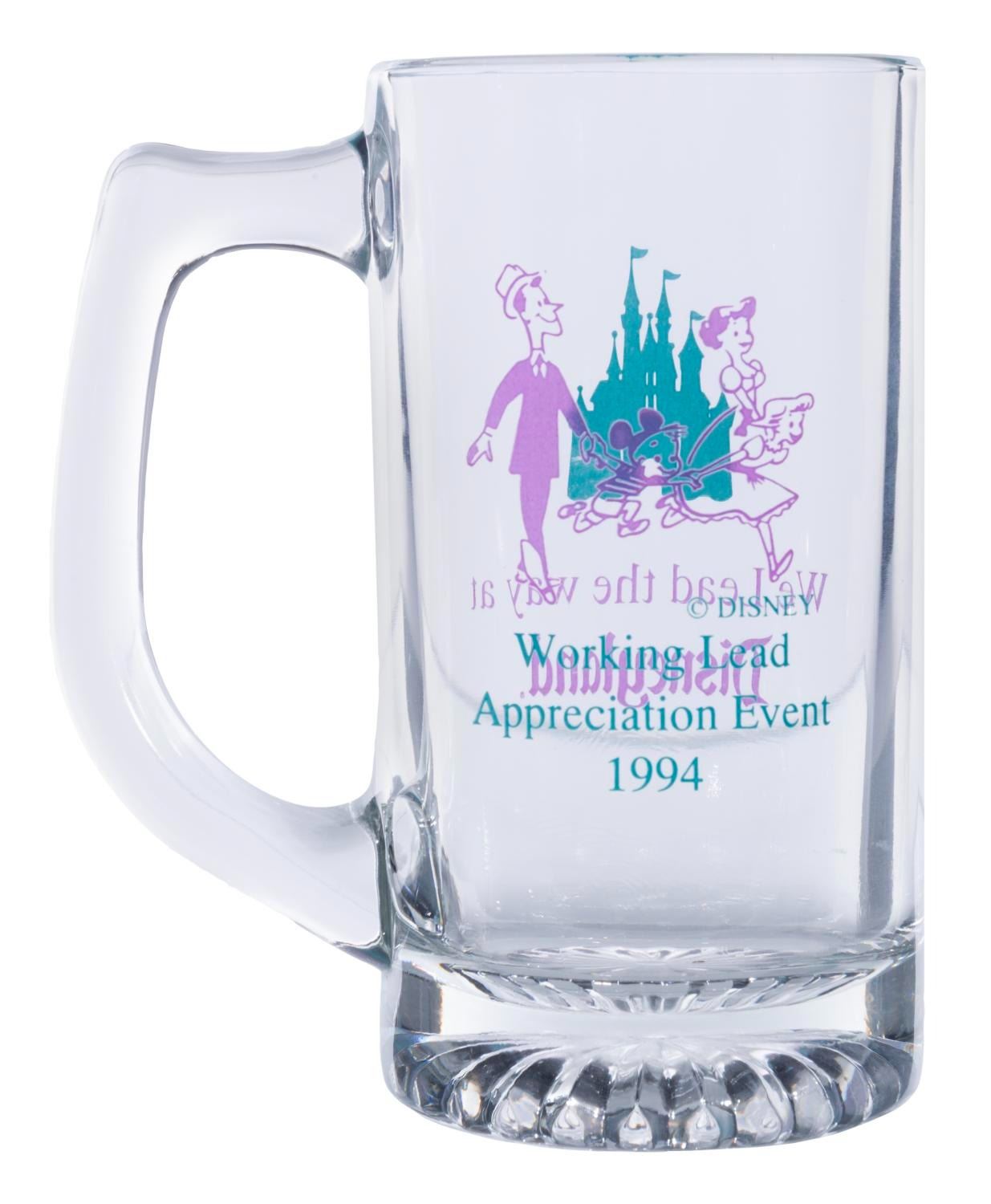 (Disneyland, 1994) A commemorative mug gifted to Cast Members at a Disneyland Working Lead event, featuring the slogan "We Lead The Way at Disneyland." Measuring 5.75" tall and 4.5" wide, this rare drinkware is in very good condition exhibiting minor wear.