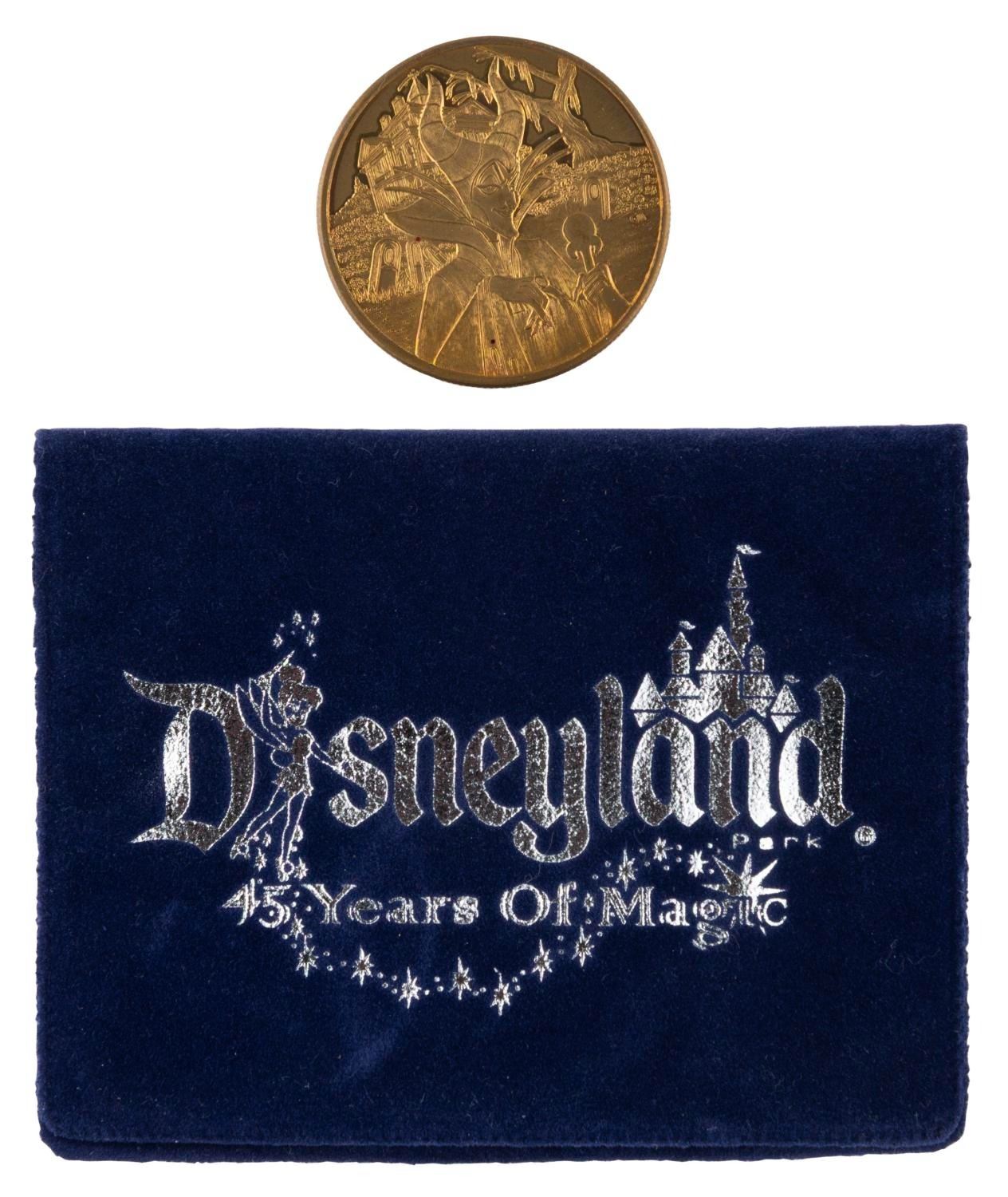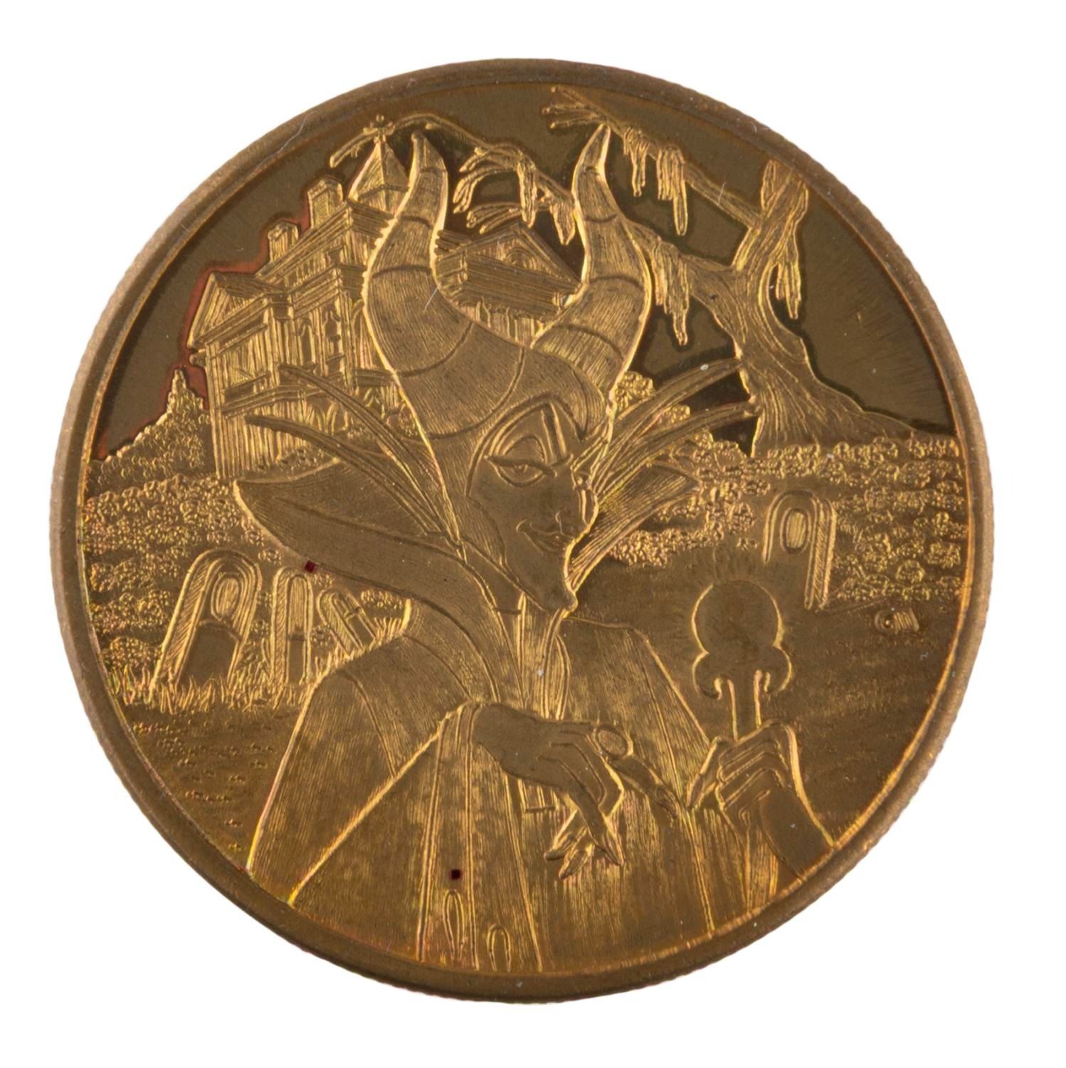 (Disneyland, 2000) A Disneyland Character of The Month Maleficent Coin, released during the 45 Years of Magic celebration and limited to an edition of 4,500 pieces. Measuring 1.5", the coin is in fine condition with a Certificate and its collectible pouch.