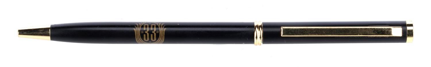 (Disneyland, 2000s) A pen souvenir of Club 33 featuring the original logo of the distinguished supper club. Measuring 5.25" long, this souvenir writing implement is in good non-working condition exhibiting some residue retention.