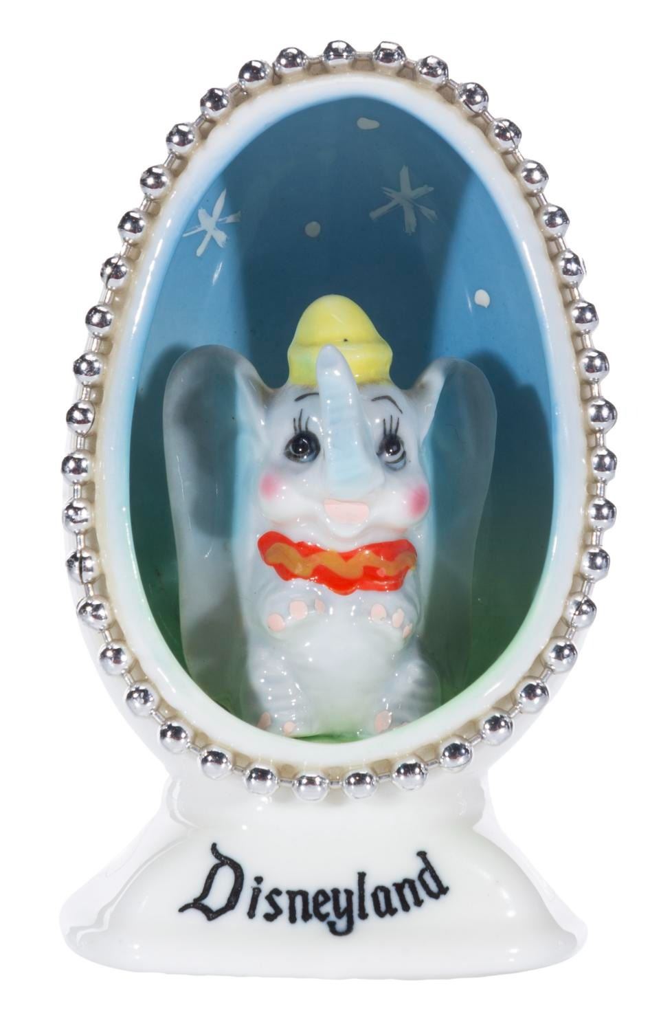 (Disneyland, 1950s-60s) A china egg souvenir of Disneyland featuring Dumbo. Measuring 2.75” x 1.75” x 1.25”, the figurine is in fine condition.