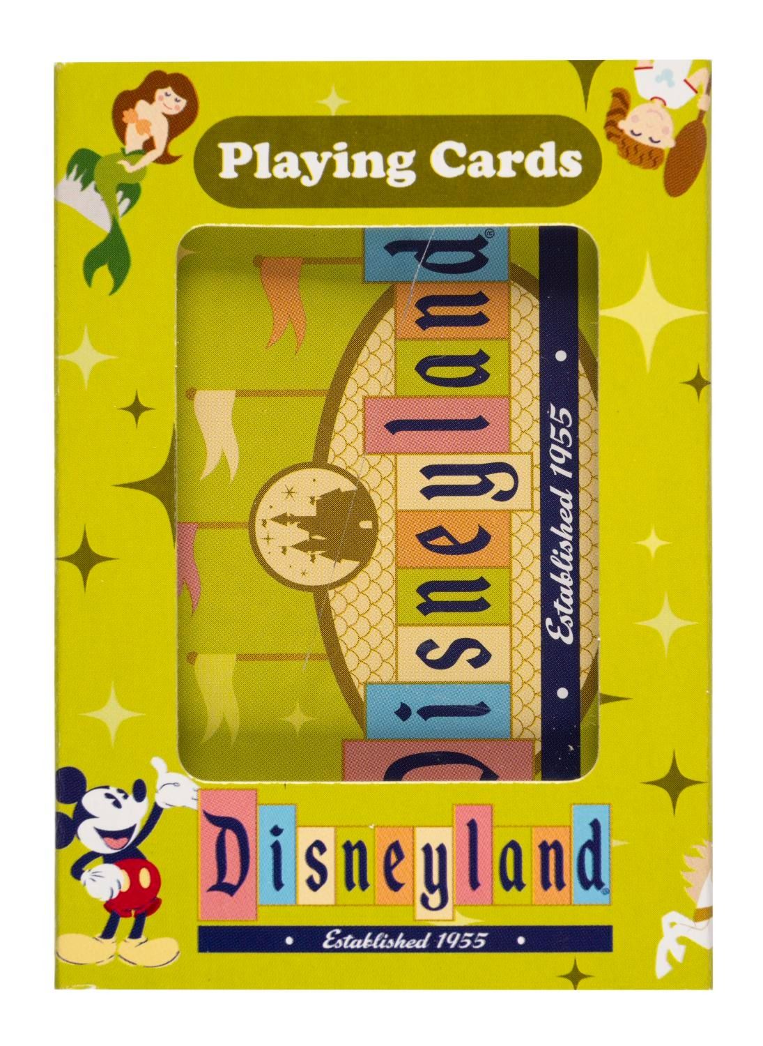 (Disneyland, 2000s) A Disneyland "Established 1955" Card Deck, featuring Mickey, Tinker Bell, and more inspired by Disneyland. Measuring 2.25"x3.5", this deck of cards is in fine condition in its original 2.5"x3.75" plastic box, with minor cracks to the box.