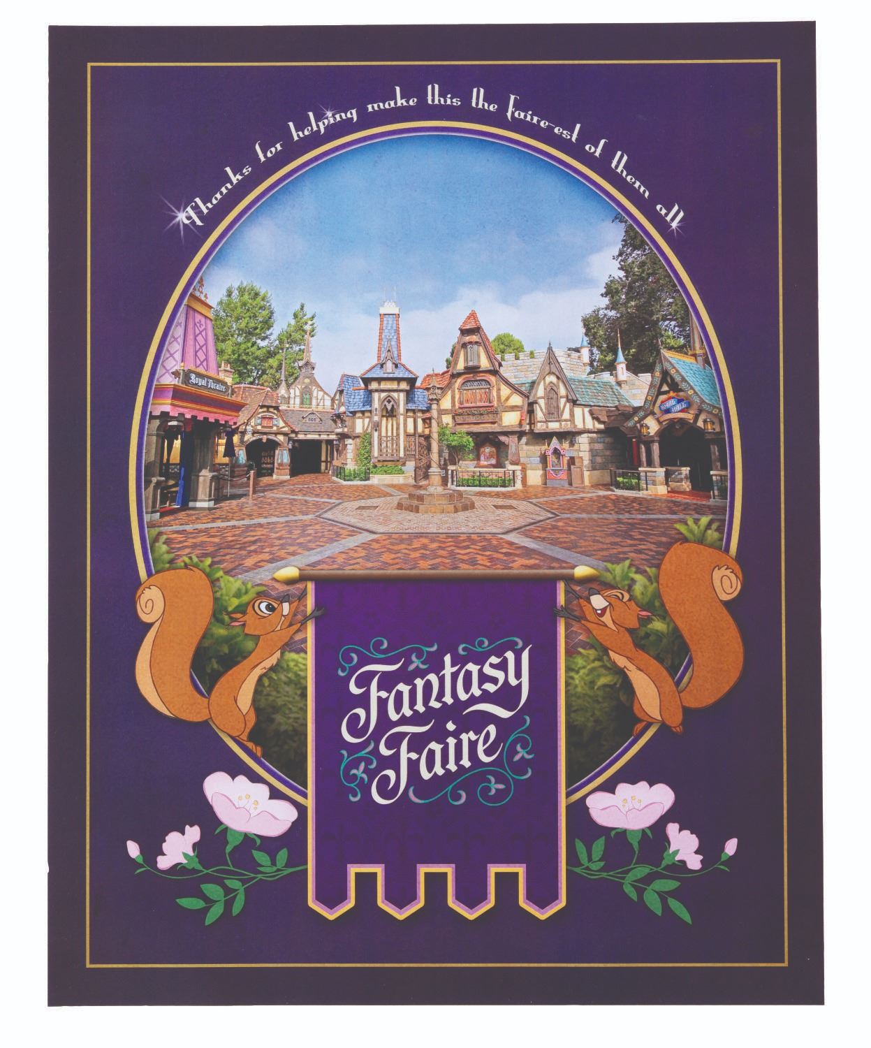 (Disneyland, 2013) A whimsical print given to Cast Members as a thank you for working on Fantasy Faire. Themed mainly to "Tangled" and "Beauty and the Beast," Fantasy Faire replaced Carnation Gardens Plaza in 2013. Measuring 11.25" x 14.25", the print is in very good condition with light wear.