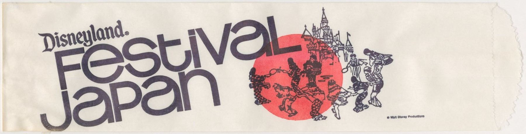 (Disneyland, 1982) An original envelope from disposable chopsticks at Disneyland's Festival Japan in 1982. Measuring 2.5" x 10.5", the empty envelope is in very good condition with discoloration and light tearing on the left edge, and water-related warping.