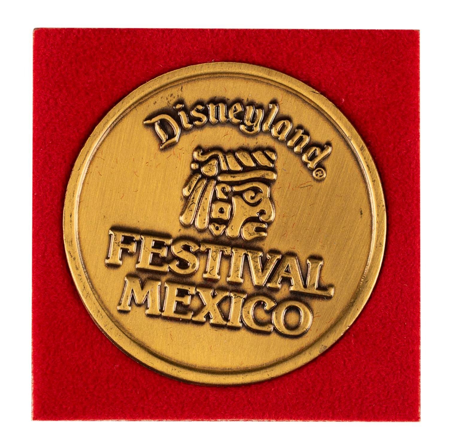 (Disneyland, 1978-1980) A souvenir medallion from Disneyland's Festival Mexico, a cultural celebration with special parades, musical groups, and performances. Measuring just over 1.5" in diameter, the medallion is in fine condition with its original case.