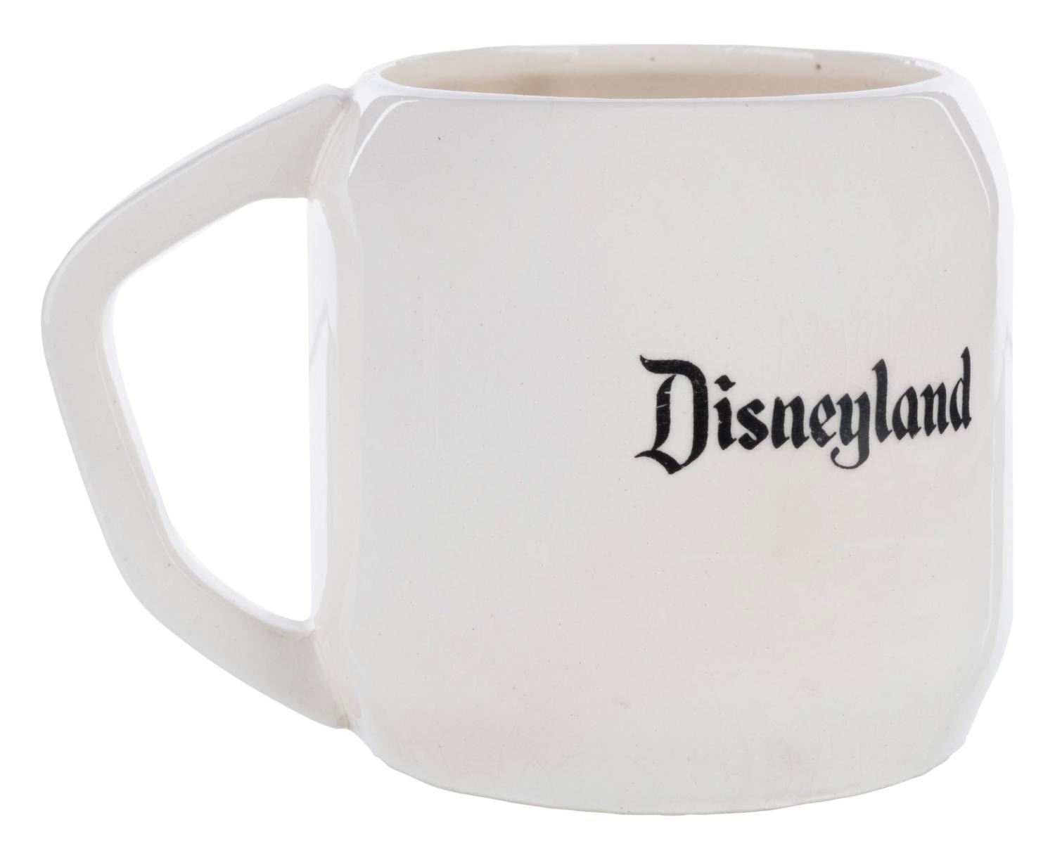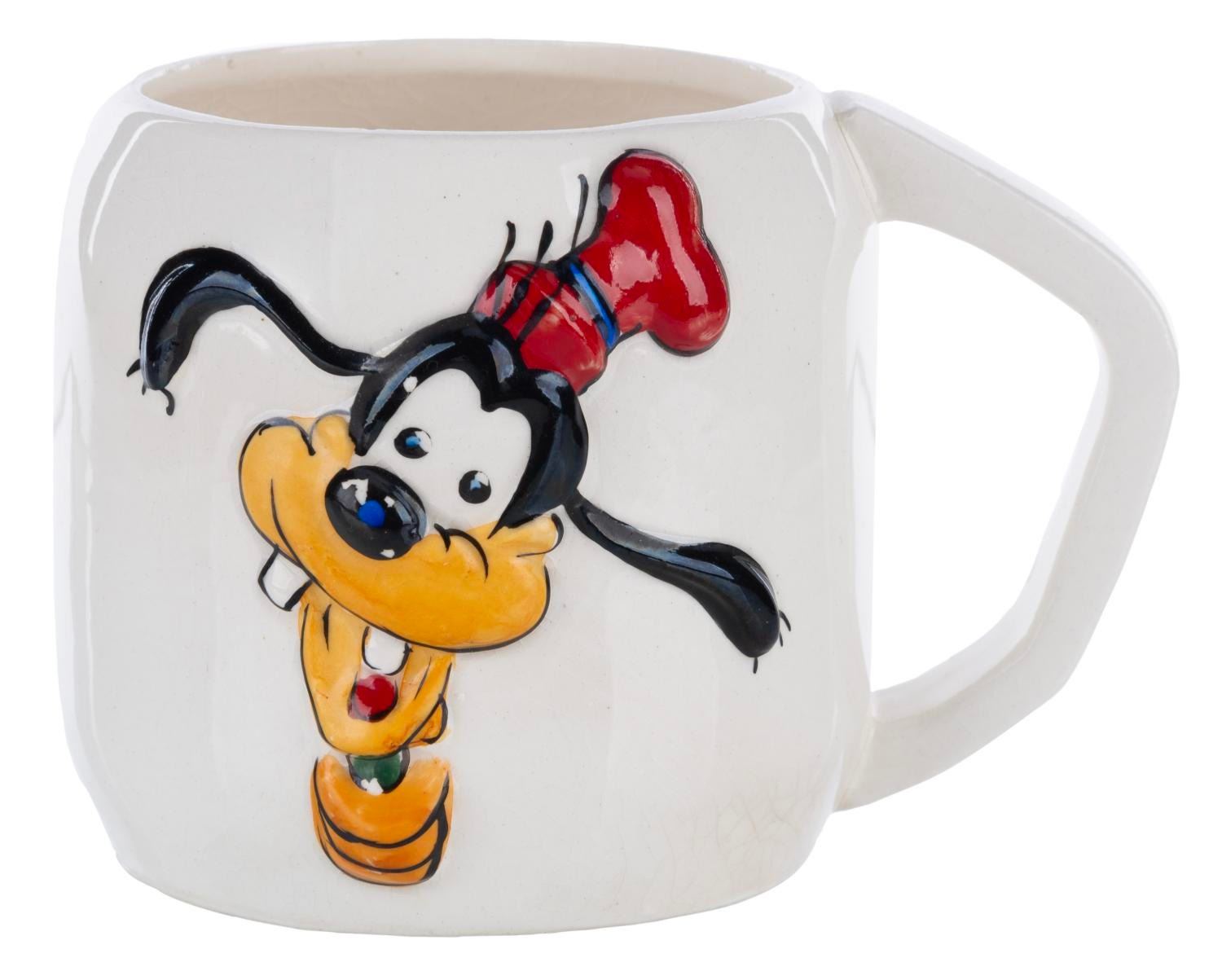 (Disneyland, 1960s) A rare Disneyland ceramic souvenir mug featuring a relief image of Goofy. Measuring 5" x 3.5" x 3.25" high, the mug is in good condition with slight paint loss to the Goofy image, and crazing throughout.
