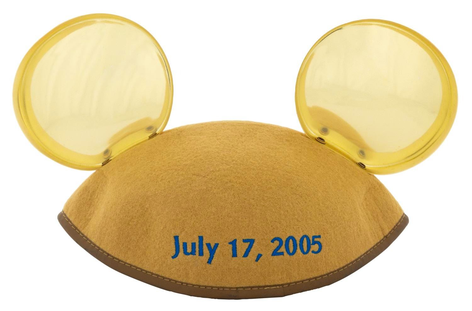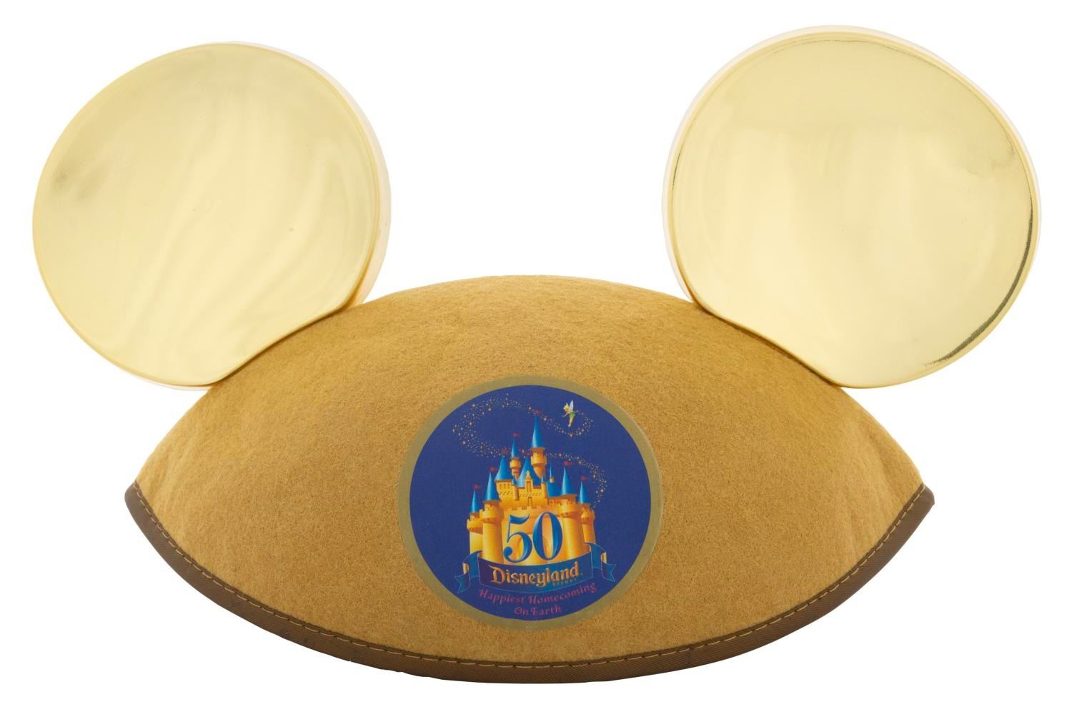 (Disneyland, 2005) A Disneyland Golden Ears Hat from the 50th anniversary of Disneyland Resort. This Mickey Ear Hat is accented with a "The Happiest Homecoming on Earth" patch. Measuring size "adult," this ear hat is in very good condition with few light scuffs to the ears.