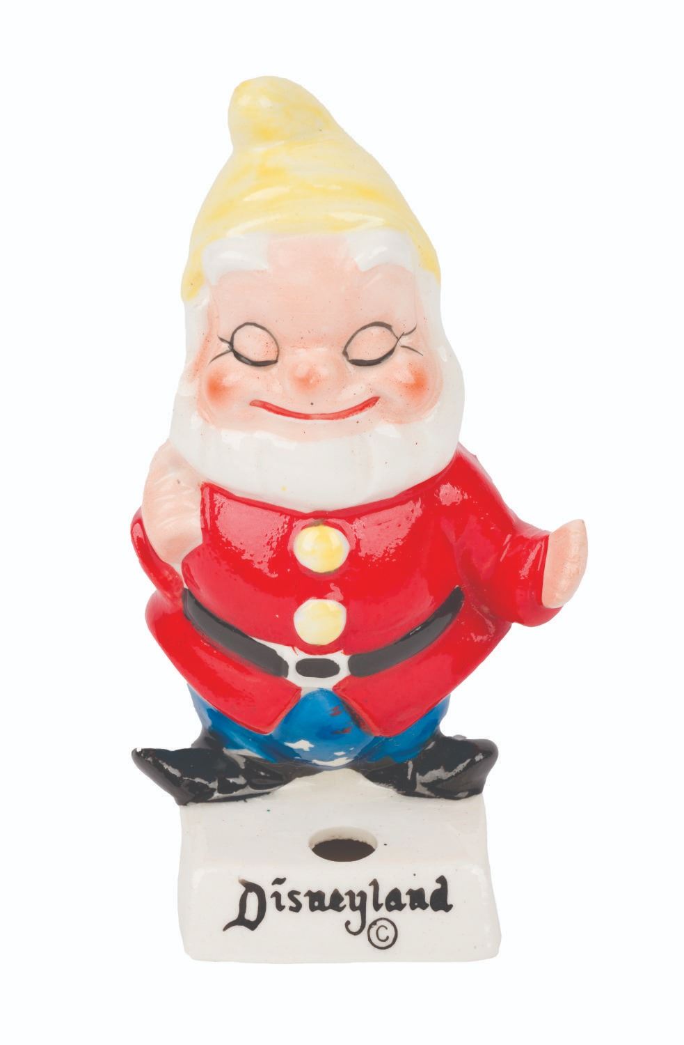 (Disneyland, 1960s) A souvenir pen holder of Happy from "Snow White and the Seven Dwarfs." Measuring 4.25” tall, the figural piece displays in good condition with spots of paint loss from the blue pants.