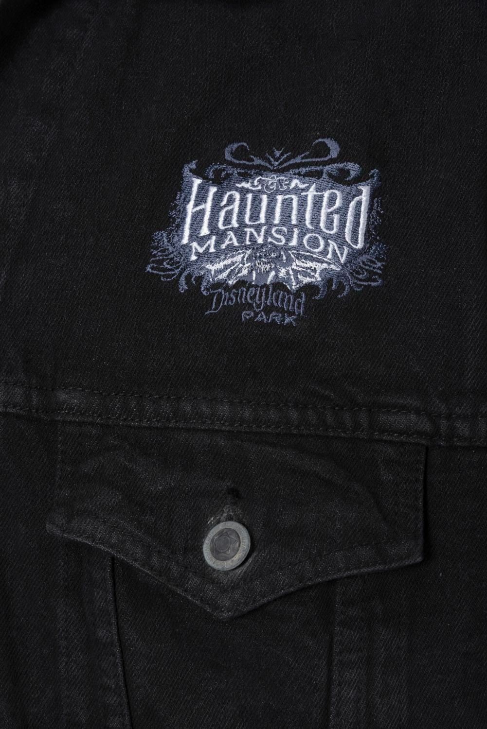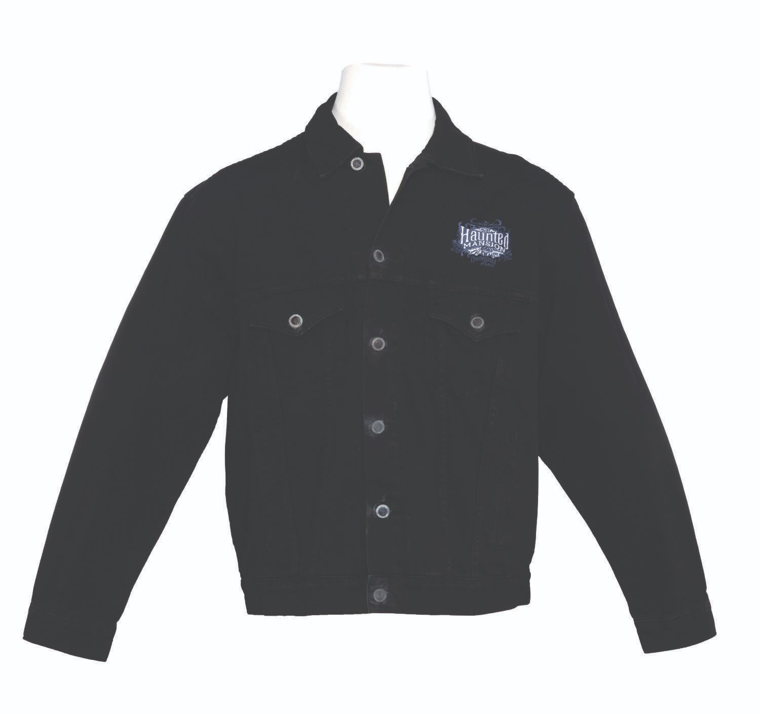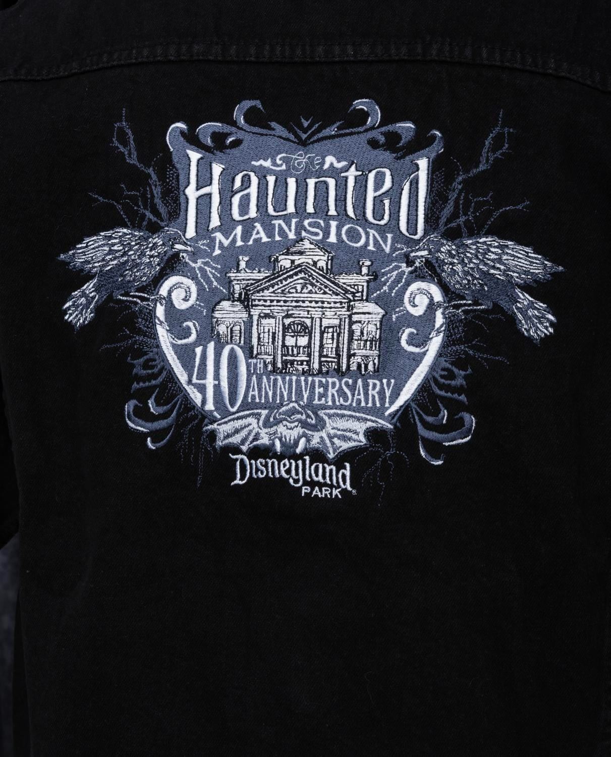 (Disneyland, 2009) A Haunted Mansion 40th Anniversary Jacket by Haleman. The lightweight black cotton jacket features “The Haunted Mansion at Disneyland Park” embroidery on the breast, and a 40th Anniversary Logo on the back. The garment retains its price tag with Size “L” sticker attached. The buttons and fabric exhibit light oxidation.