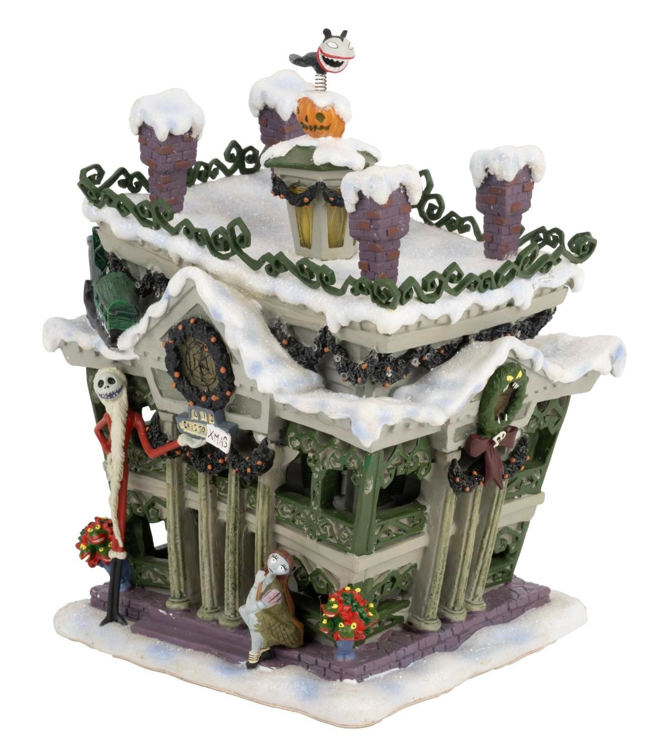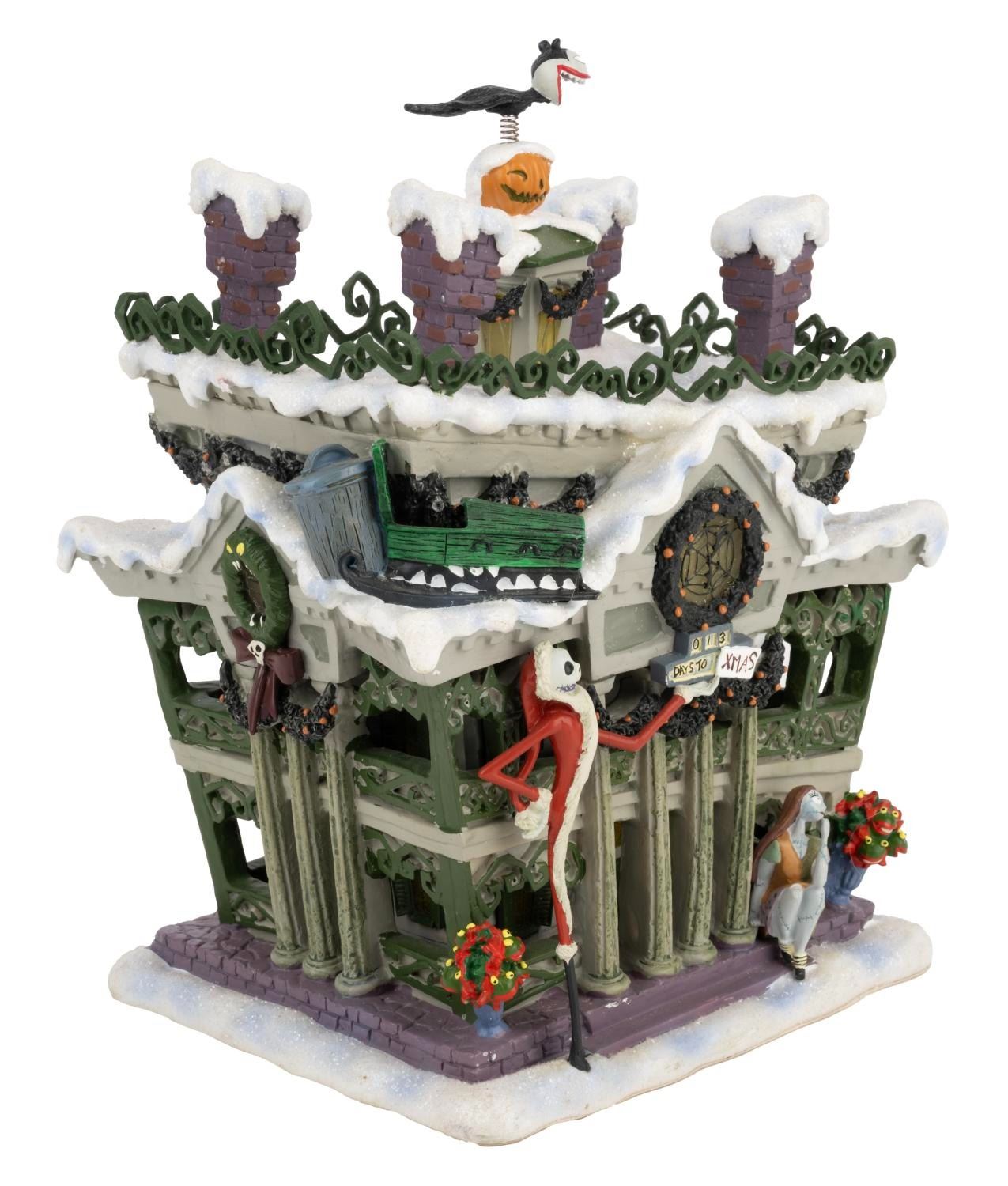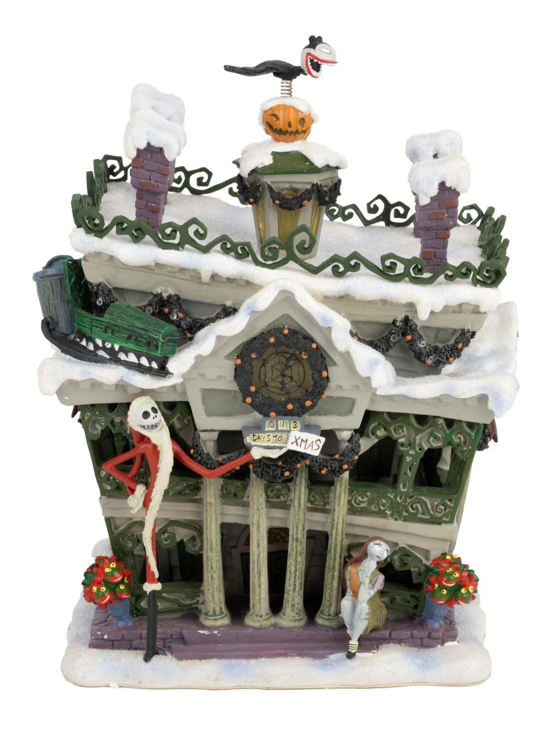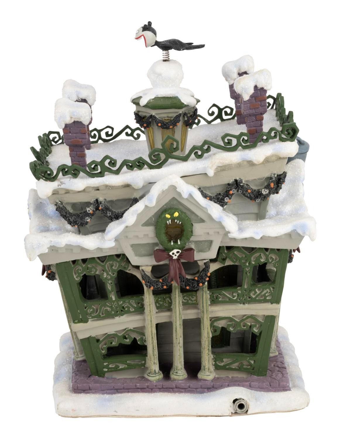 (Disneyland) A Haunted Mansion Holiday figure by Fumark. This miniature is inspired by the seasonal overlay. As this decoration is missing its original adapter, the electrical function of this piece has not been tested. Measuring 8.5"x6."x6.5", this piece is in good overall condition exhibiting wear, broken ornamental cresting, and a repaired Vampire Teddy head.