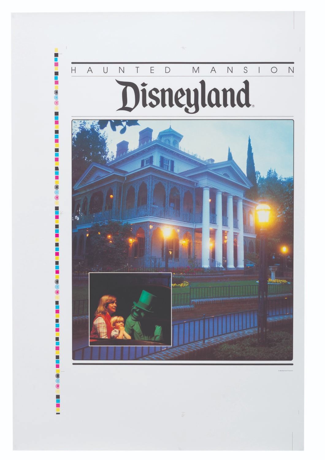 (Disneyland, 1982) An untrimmed Disneyland souvenir poster for the Haunted Mansion from 1982. Measuring 24" x 36", the poster is in very good condition with areas of light creasing around the edges.