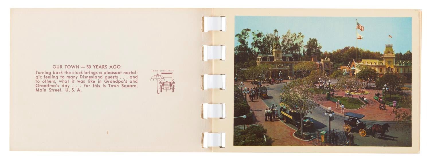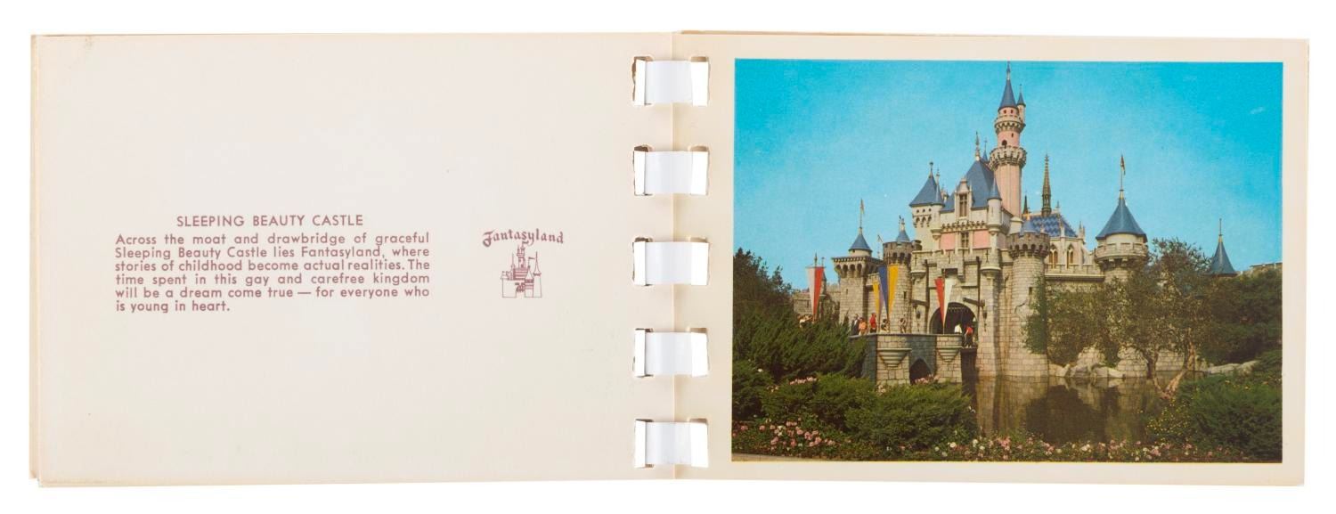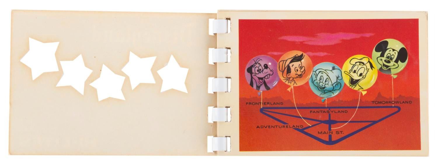(Disneyland, 1960s) A Disneyland Hi-Lites souvenir photo album of 12 colorful images from around the Park. This version of the album features the Tomorrowland image with the Douglas sponsored Rocket to the Moon. Measuring 2.75" x 4" the album is in good condition with light discoloration, soiling and edge wear.