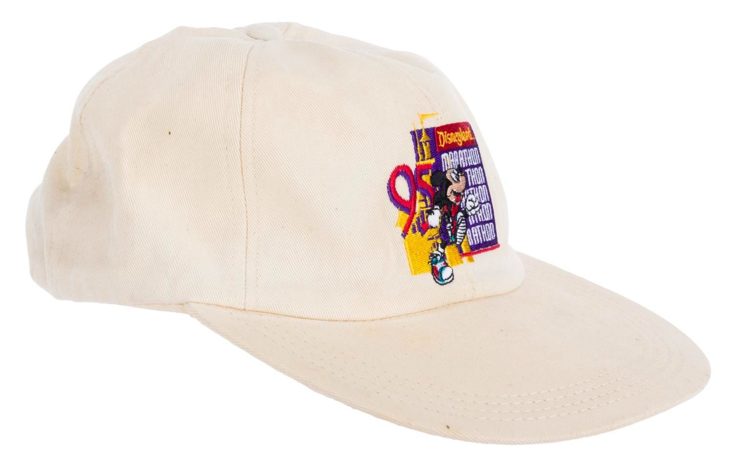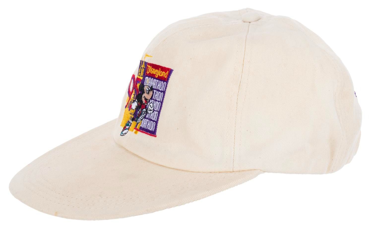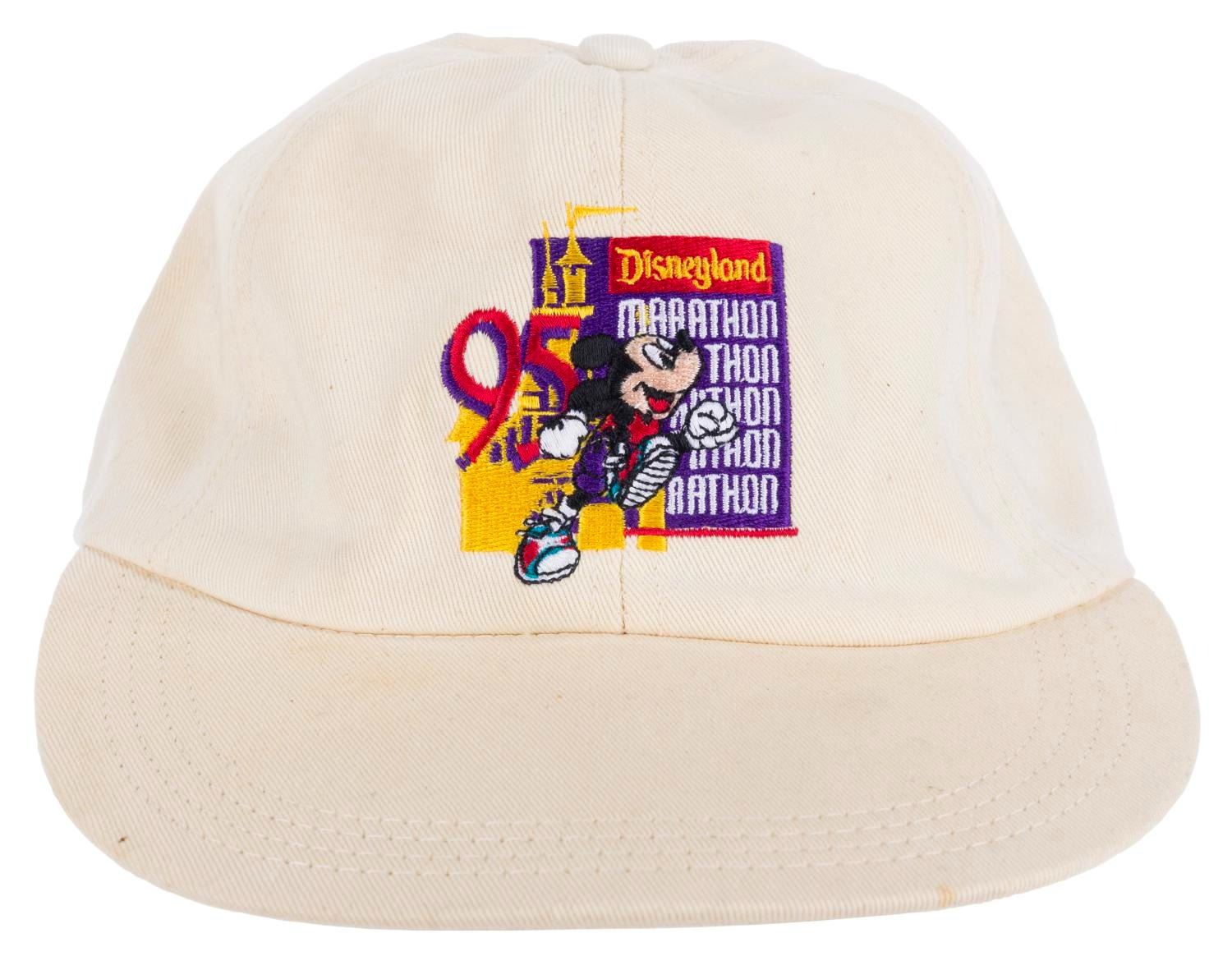 (Disneyland, 1995) A souvenir baseball hat from the 1995 Disneyland Marathon featuring Mickey Mouse. Labeled a one size fits all, the hat is in good condition with light pilling, stains, and wear.