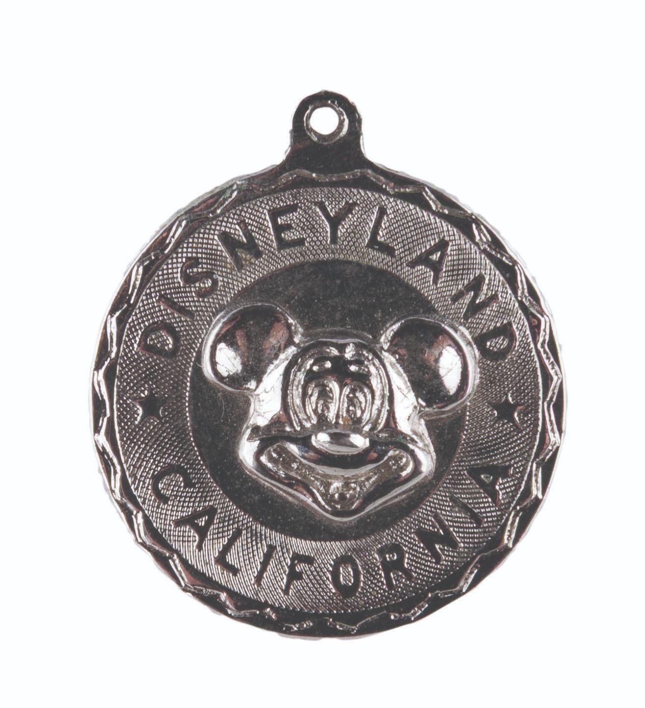 (Disneyland, 1960s-80s) A sterling silver Disneyland charm featuring Mickey Mouse. Measuring 1 " in diameter, the charm is in very good condition with scratches on the reverse.