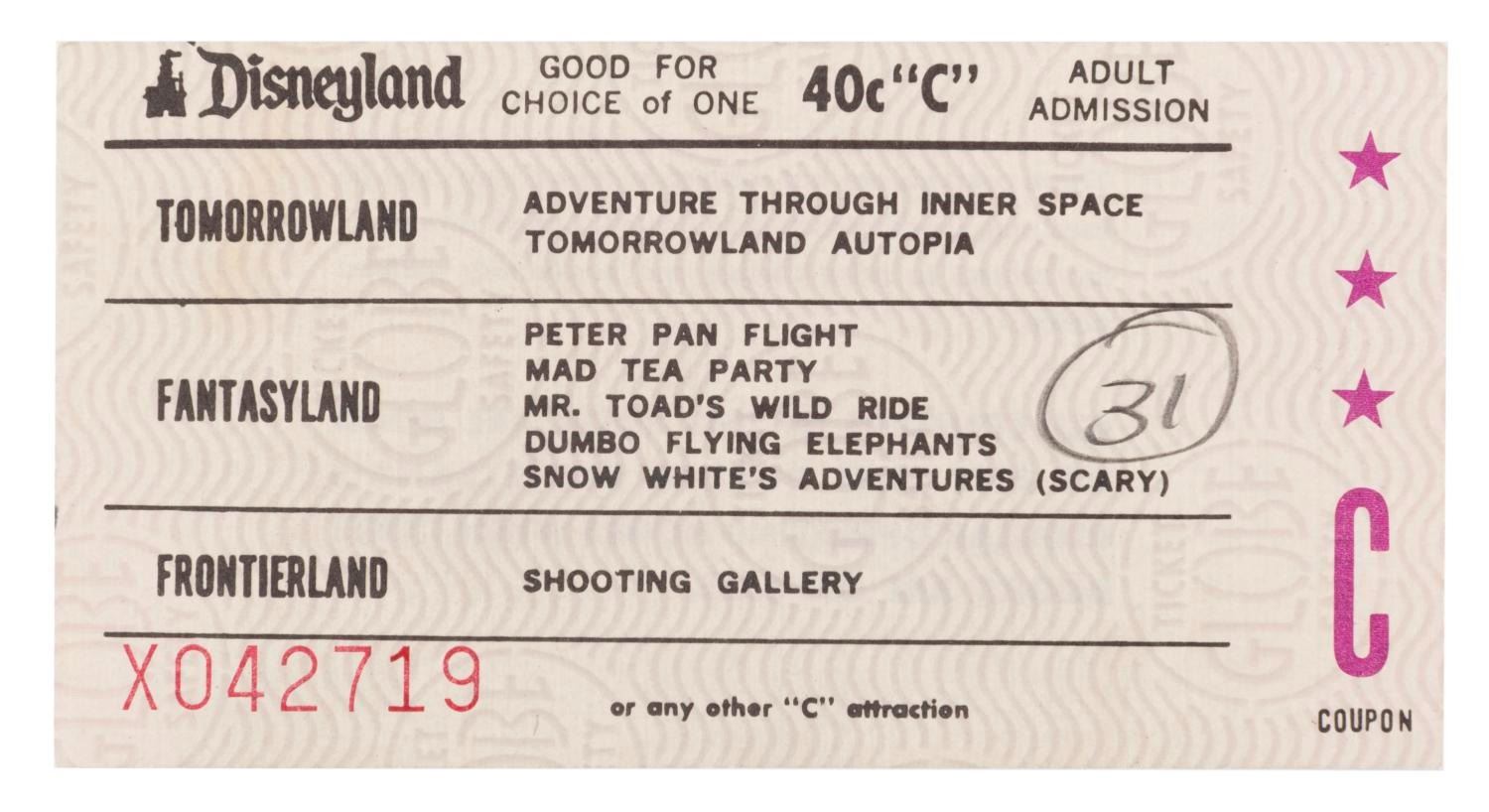 A Disneyland Mid-1970s Adult "C" Ticket.