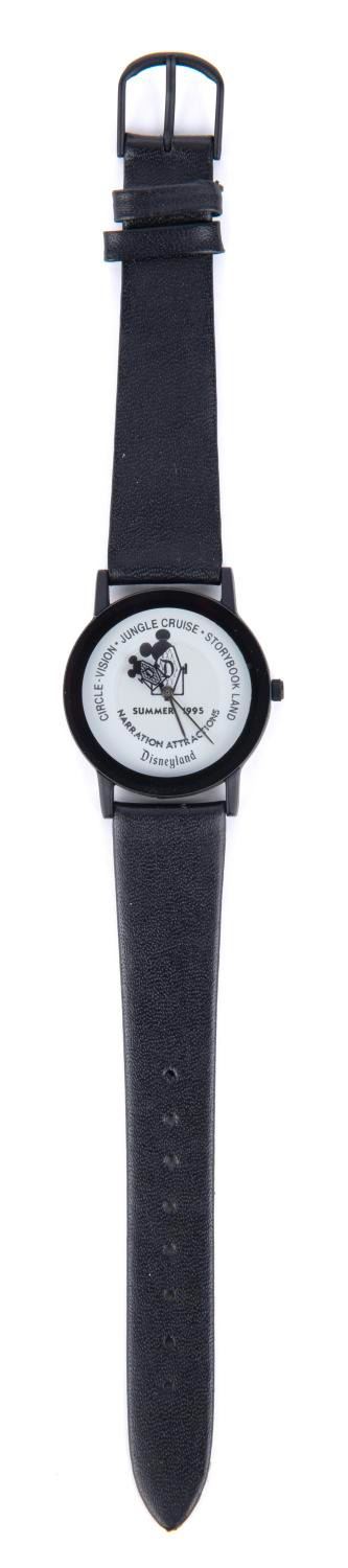 (Disneyland, 1995) An exclusive wristwatch produced for Cast Members who narrated the Circle-Vision, Jungle Cruise, and Storybook Land attractions at Disneyland. The watch is in fine unused condition.