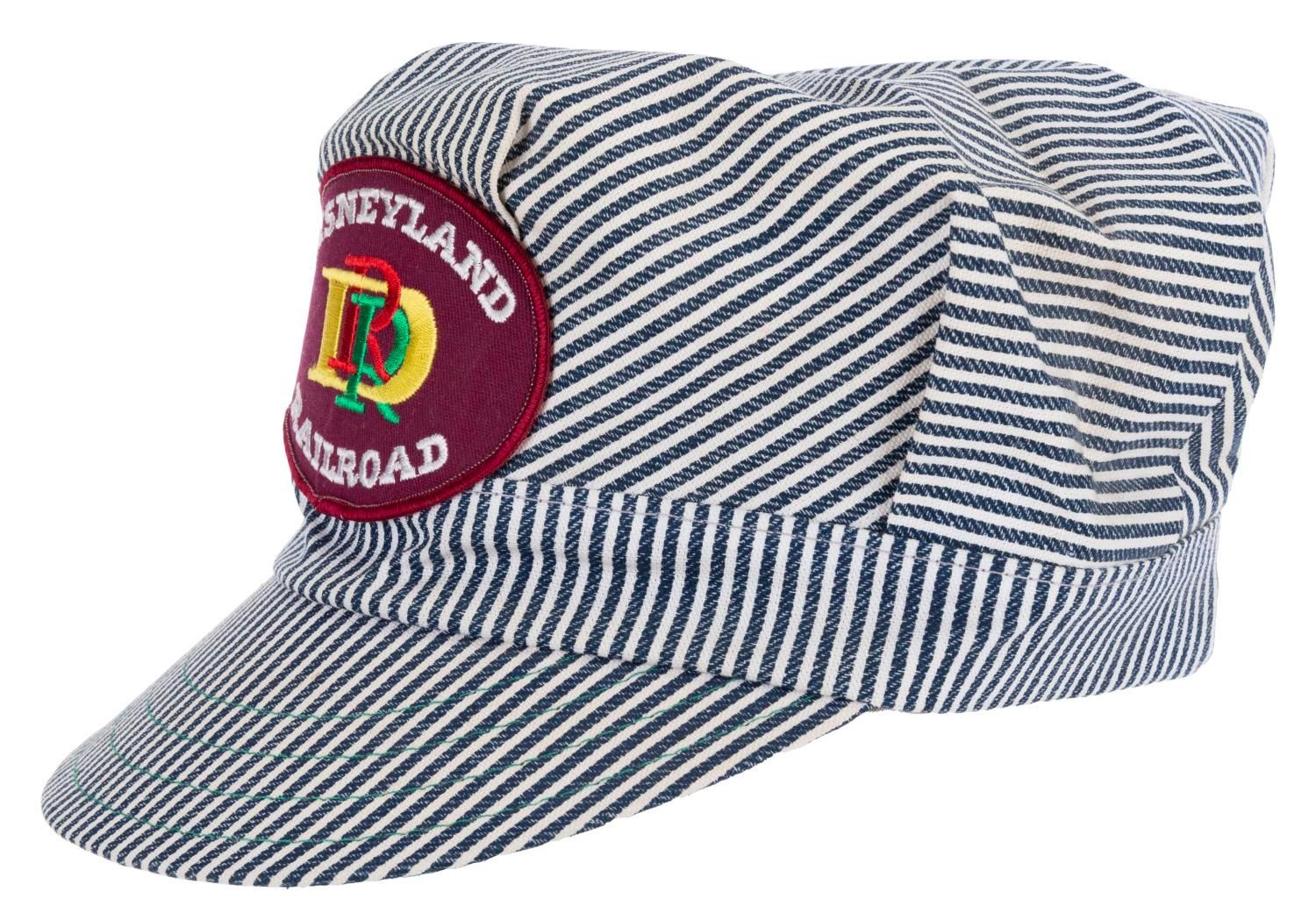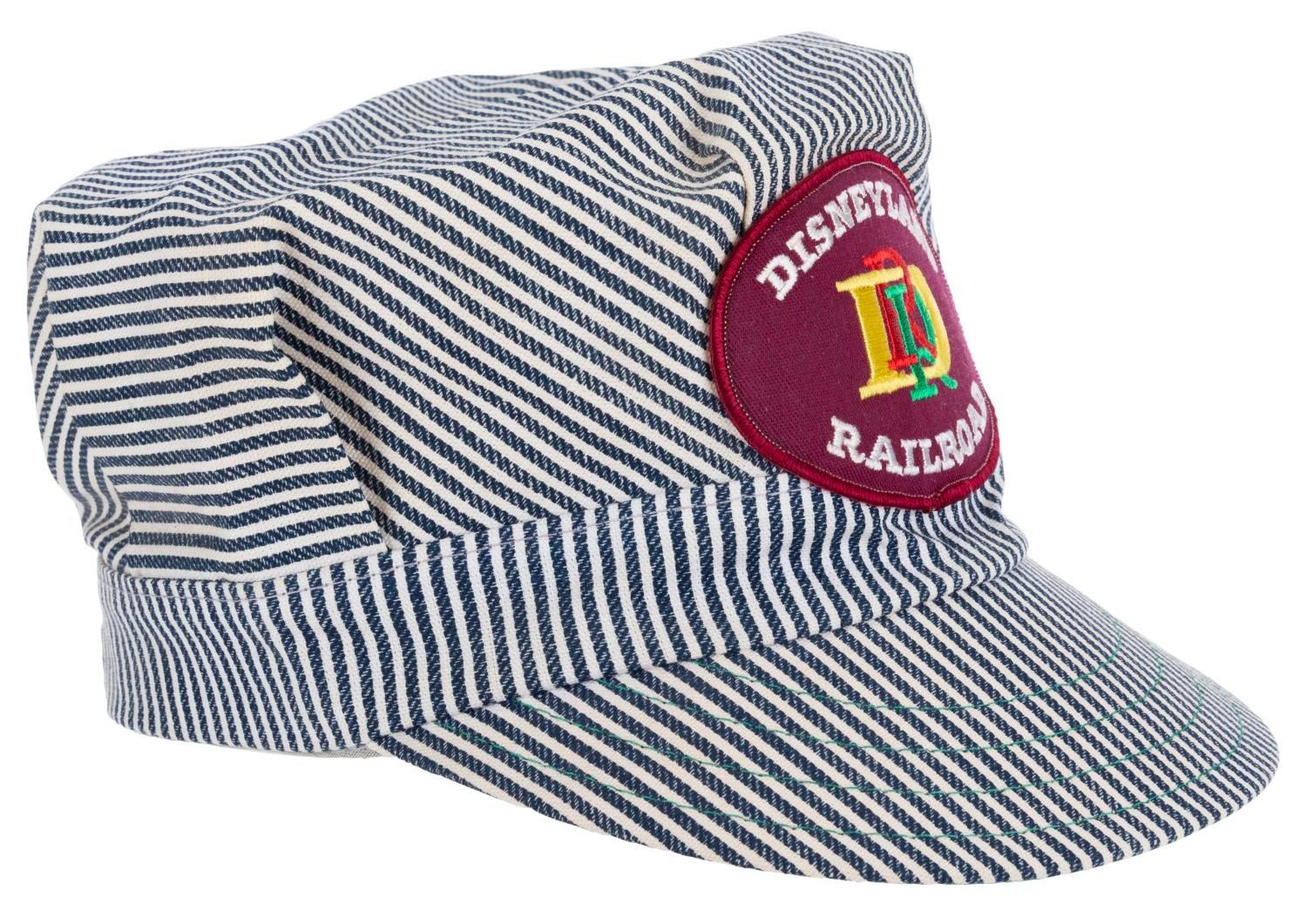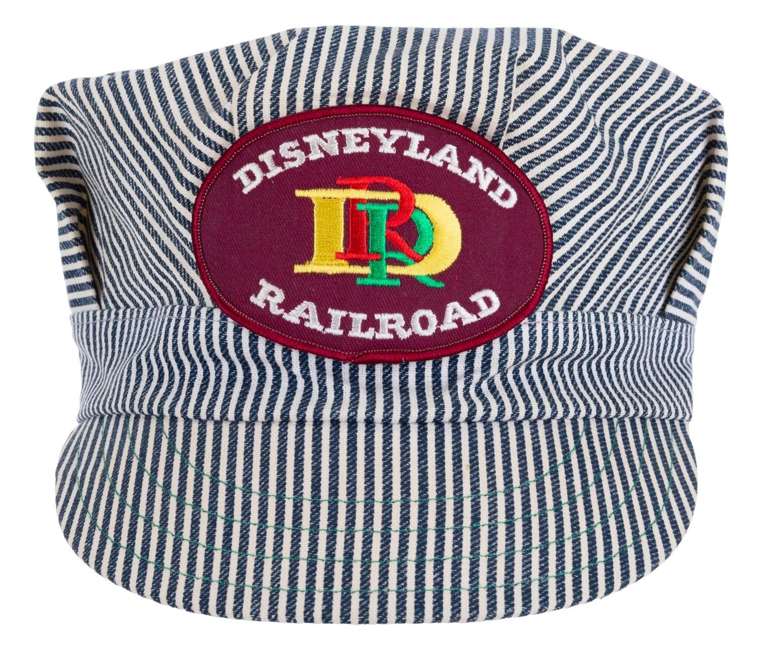 (Disneyland, 1980s-90s) A striped Disneyland Railroad baseball cap with an embroidered logo. Labeled "One Size," the hat is in very good condition with very light wear from age.