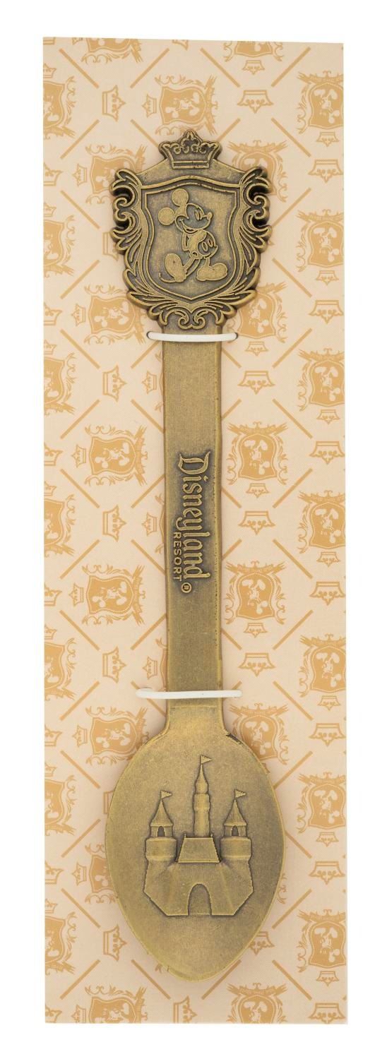 (Disneyland, 1990s-2000s) A Mickey Mouse and Sleeping Beauty Castle souvenir spoon from Disneyland Resort. Measuring 4.75" long in its 2.25"x5.75" plastic product box, this collectible is in fine condition.