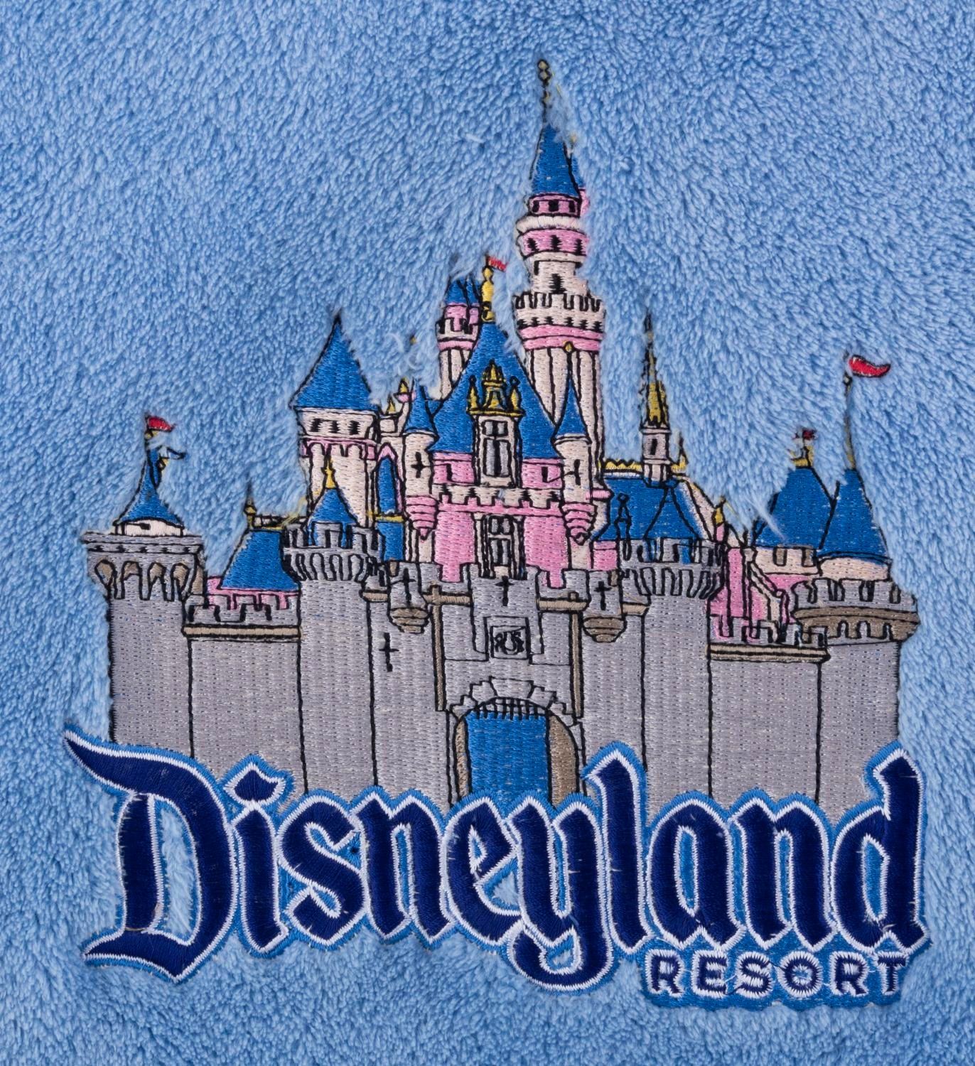 (Disneyland Resort, 2000s) A throw blanket featuring Sleeping Beauty Castle from the Disneyland Resort. Measuring 48” x 58”, the blanket is in very good condition with light wear.