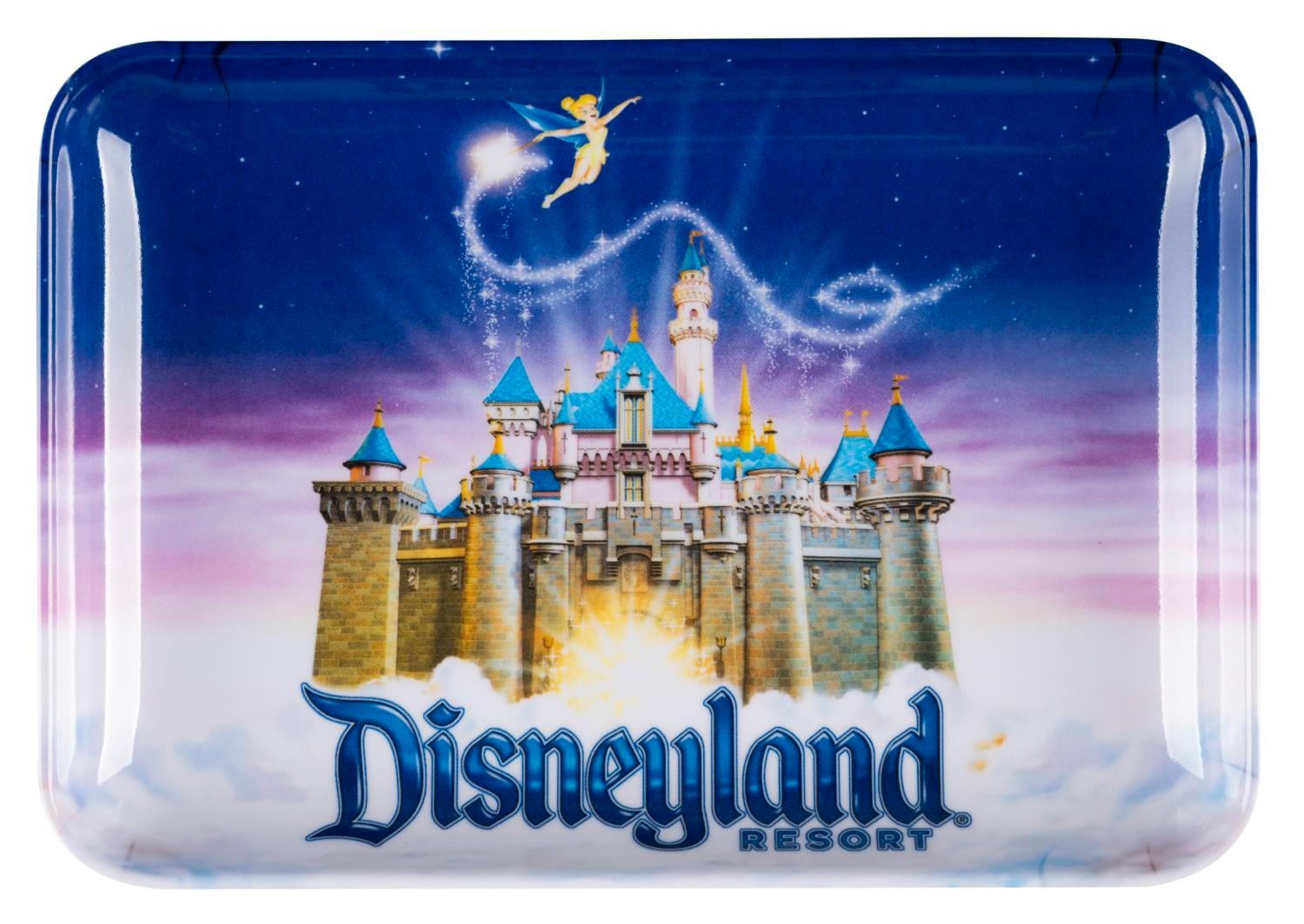 (Disneyland Resort, 2000s) A plastic souvenir tray featuring Disneyland's Sleeping Beauty Castle and Tinker Bell. Measuring 4.25” x 6.25”, the tray is in very good condition with light stains.