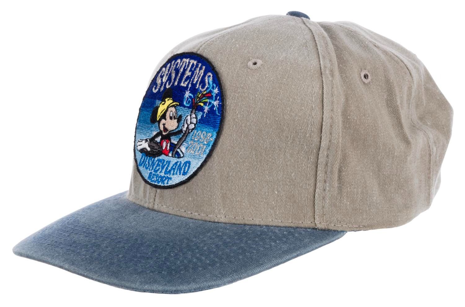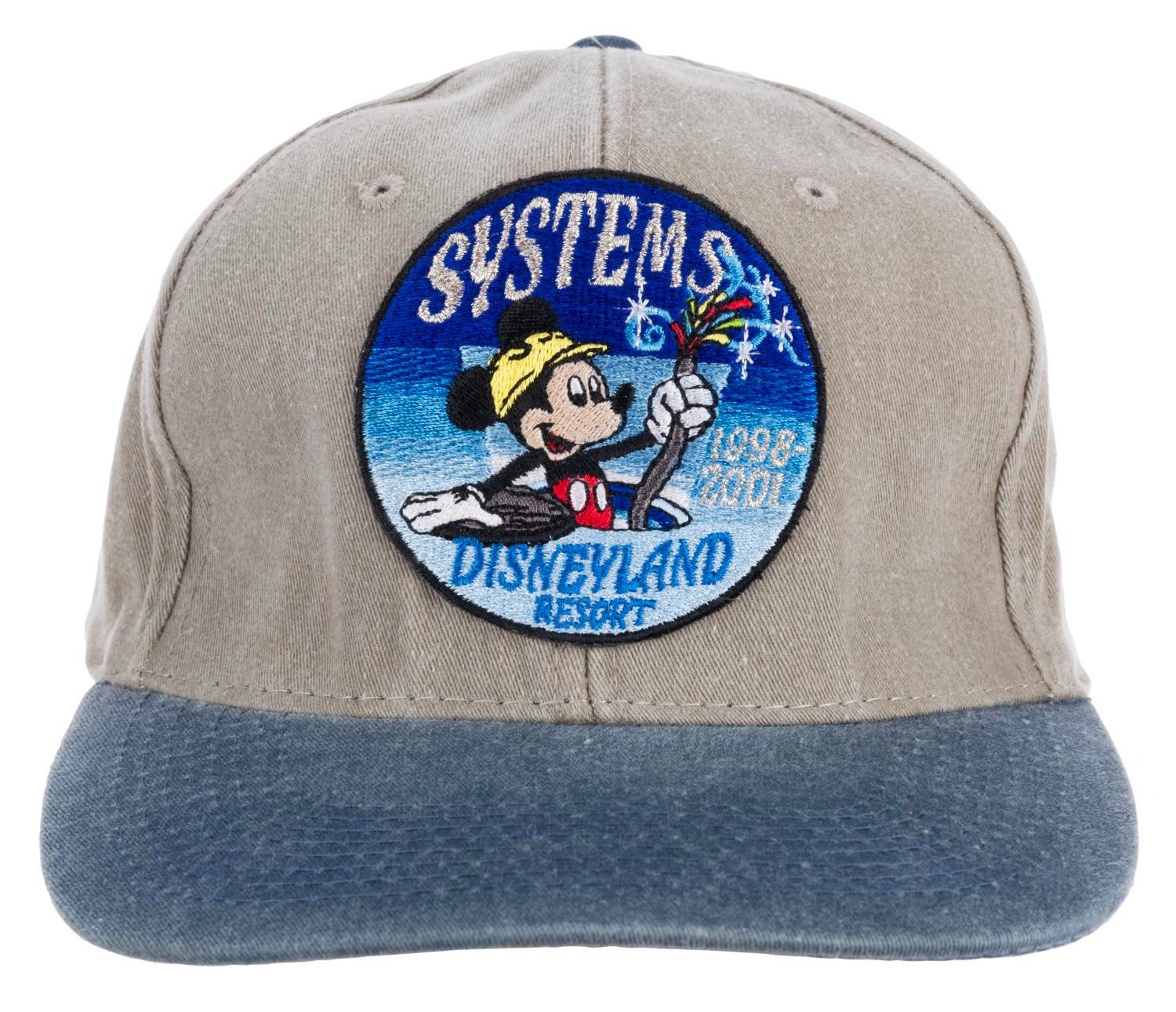 (Disneyland, 2001) A Disneyland Resort Systems hat featuring Mickey in a hard hat pulling on a wire. Labeled a one size fits all, the Cast Member-exclusive hat is in good condition with pilling, discoloration from age, stains, and wear from use.