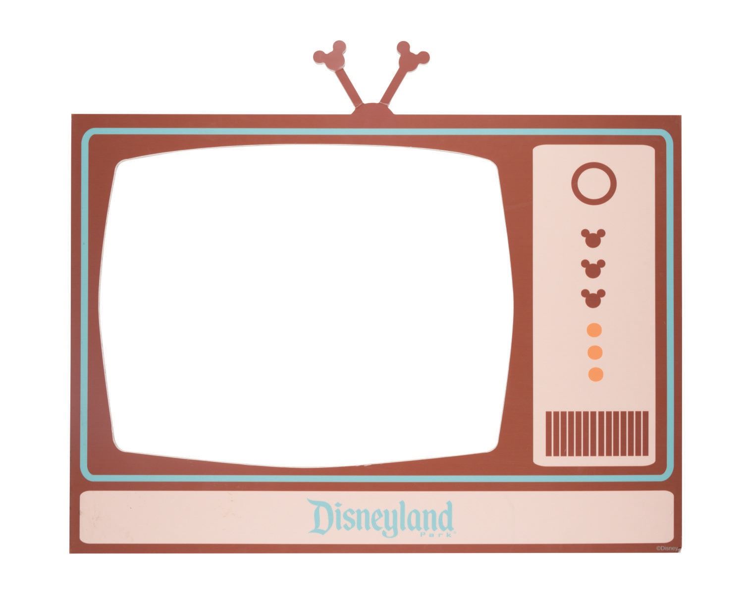 (Disneyland, 2010s) A television prop from Disneyland Resort. This prop was created for television-themed photo opportunities at Disneyland After Dark Events hosted by Disneyland Resort during the 2010s. Measuring 30"x25" from the top of the antennae to the bottom of the set prop, the piece is in very good condition, with some wear, tear, and creasing to the antennae and throughout from original Park use and guest handling.