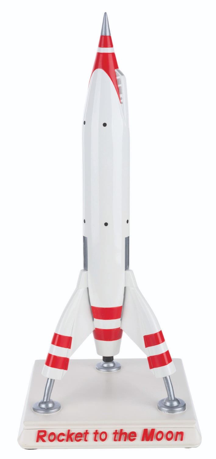 (Disneyland, 1995) A limited edition desk model of the Tomorrowland Rocket to the Moon attraction at Disneyland, released by the Disney Gallery. Measuring 8.25" x 8.25" x 18.5" tall, the resin model displays in very good condition with light crazing to the top of the base and heavy crazing to the underside, which can not be seen when displayed.