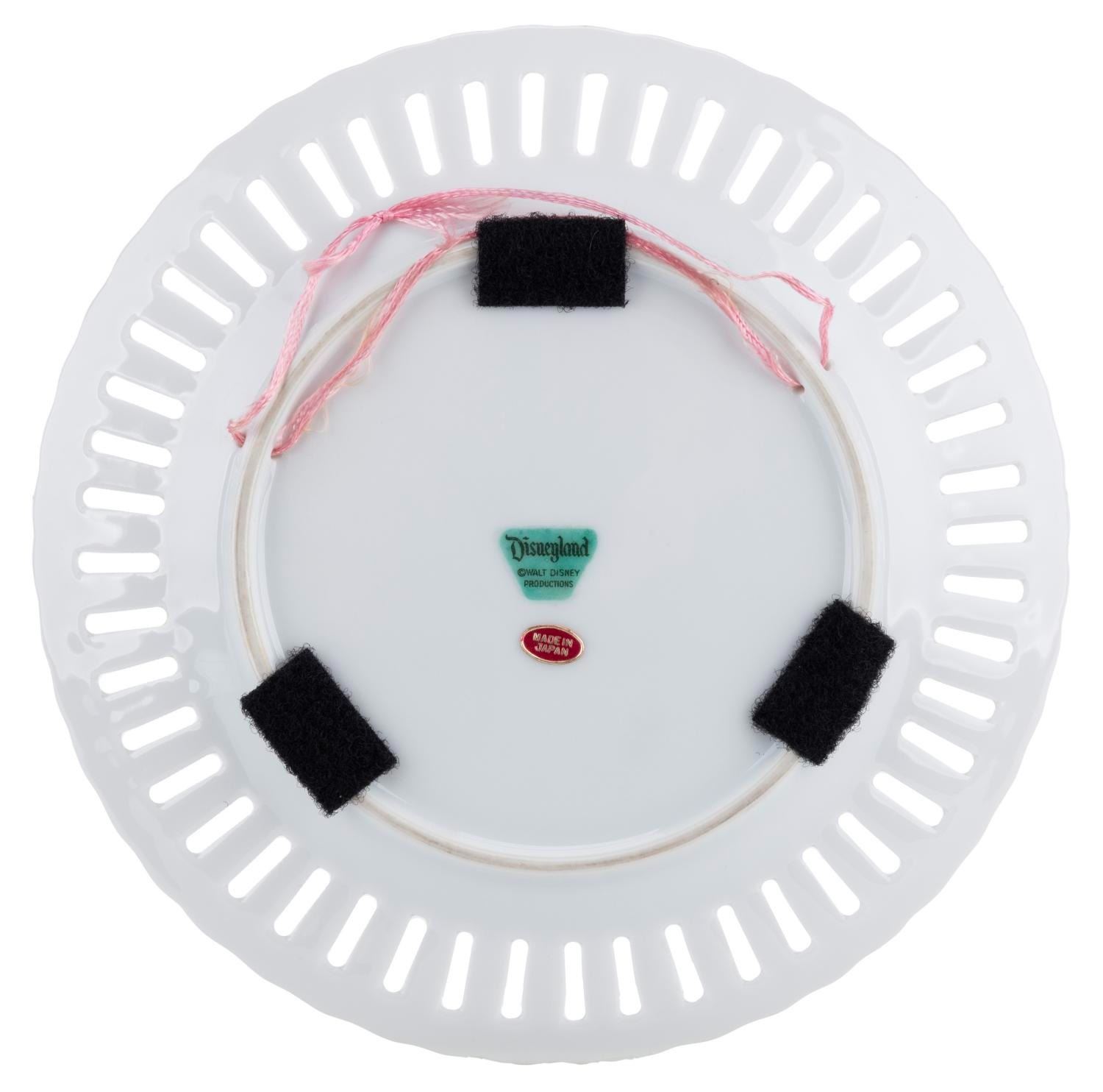 (Disneyland, 1960s-70s) A souvenir decorative plate featuring a "slotted" pattern with a gold accent. Measuring 7.25" in diameter, the plate is in very good condition with light wear from display.