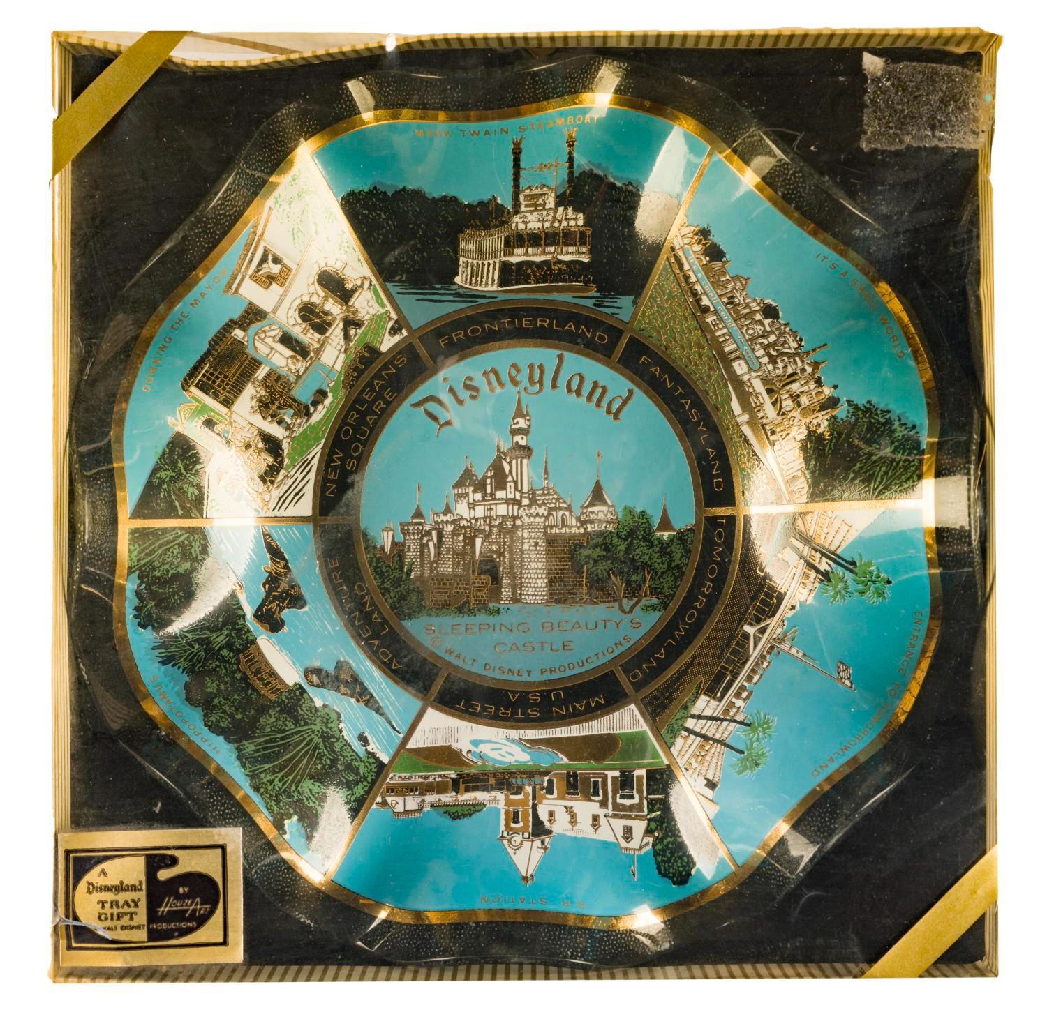 (Disneyland, 1960s/1970s) A Disneyland souvenir glass dish made by Houze Art. Many versions of this plate were sold at Disneyland and Walt Disney World. the dish is in fine unused condition with original packaging.