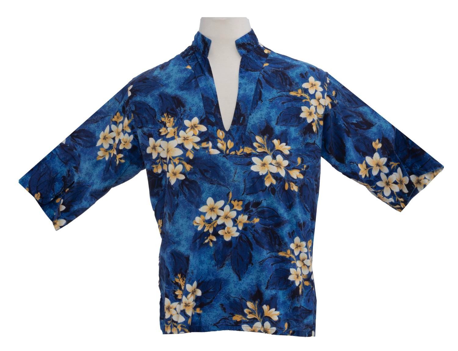 (Disneyland, 1960s) A souvenir floral-print Hawaiian-style shirt manufactured for sale at Disneyland. Measuring a large size, this shirt is in good condition, missing its size label but retaining its original Disneyland label.