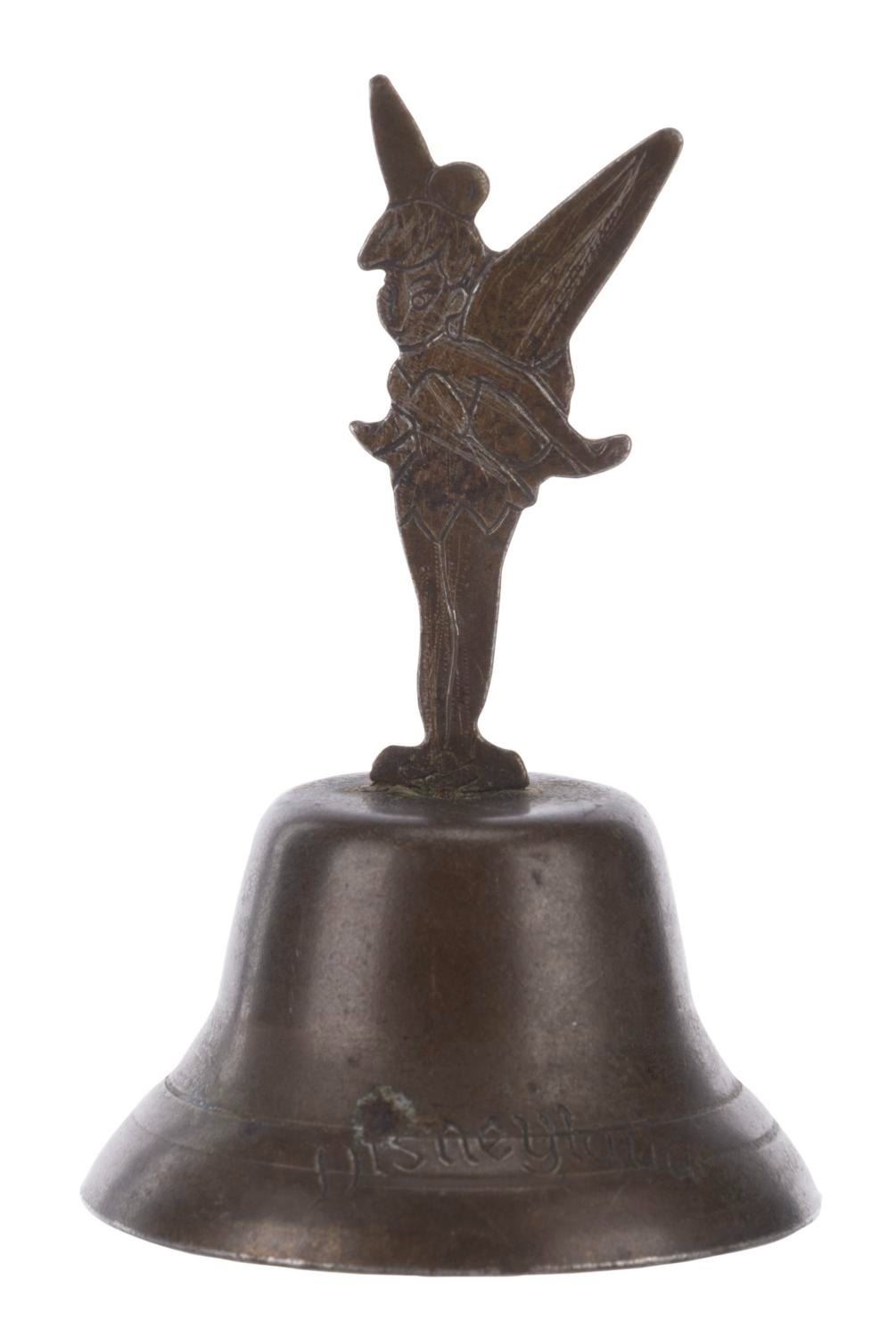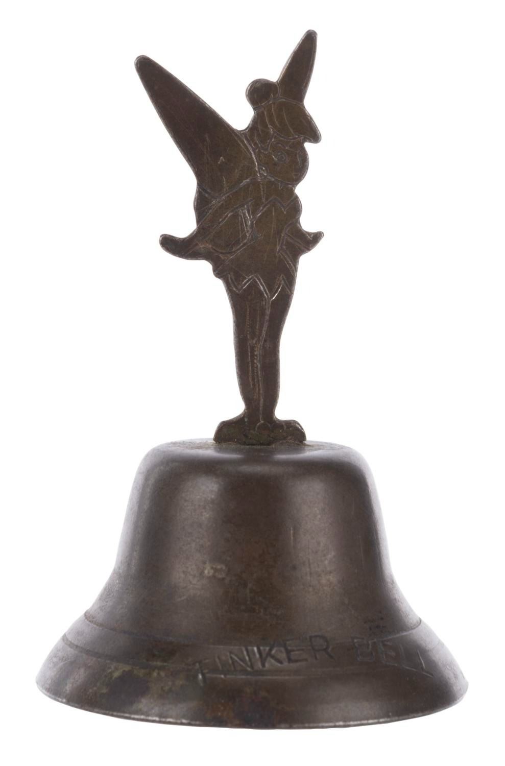(Disneyland, 1950s-60s) A brass souvenir bell from Disneyland featuring Tinker Bell. Measuring 1.5” in diameter and 2.25” tall, the bell is in good condition with tarnish and light scratches.