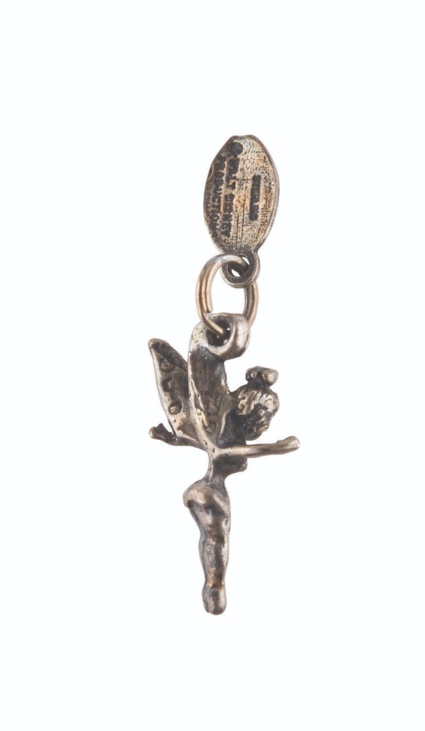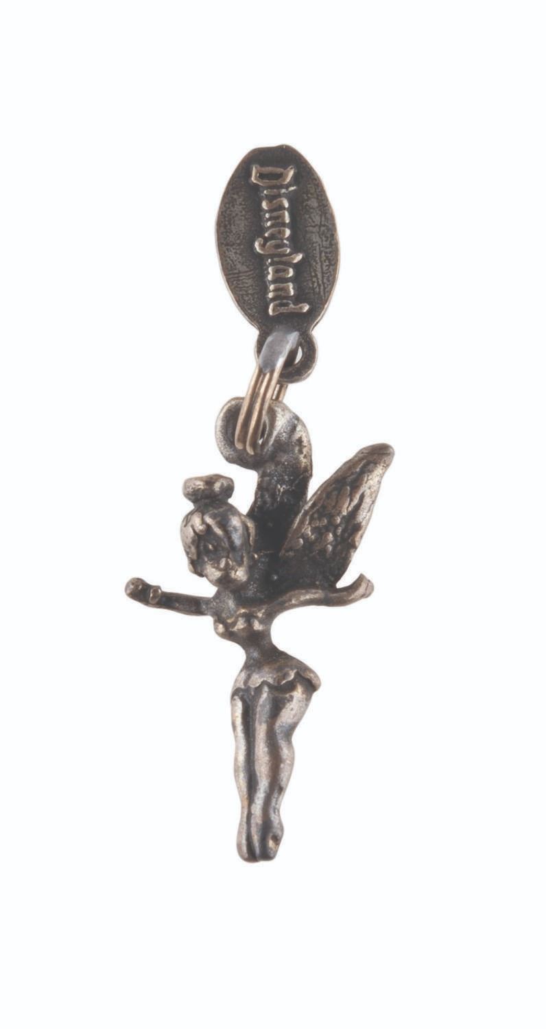 (Disneyland, 1960s-70s) A sterling silver souvenir Tinker Bell charm from Disneyland. Measuring 1.5 " long, the charm is in good condition with heavy tarnishing.