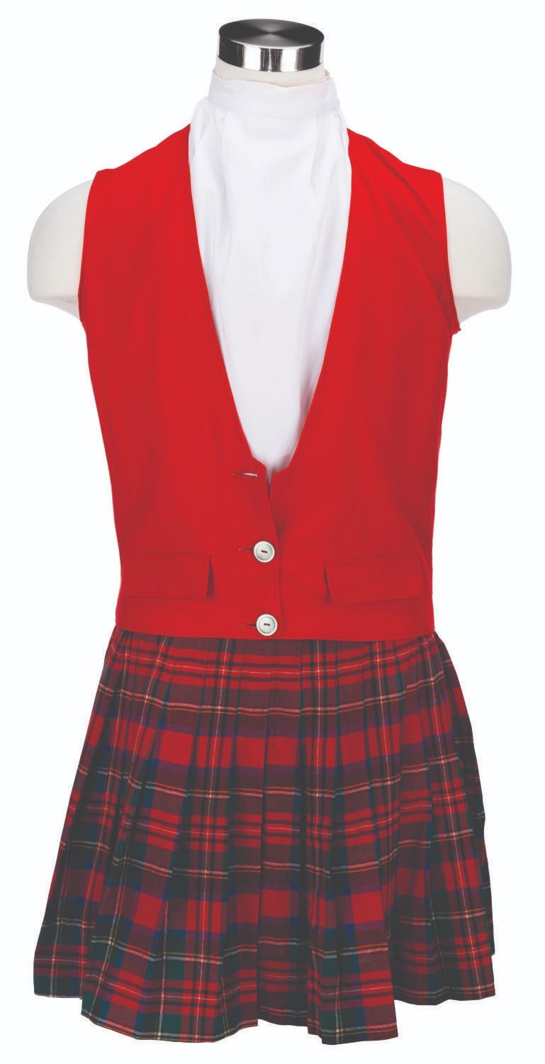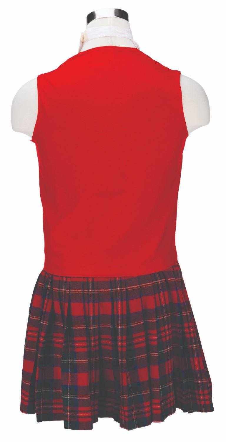 (Disneyland, 1970s-90s) A three-piece costume worn by Cast Members working as Disneyland Tour Guides. The VIP experience takes Guests on a guided historical tour of Disneyland and provides a rare behind-the-scenes look at the Park. The costume consists of a red vest, plaid skirt, and white apron. The shirt is labeled a size 18, the skirt a size 28-20, and the apron is unlabeled. The female Cast Member costume is in very good condition with light wear from Park use.