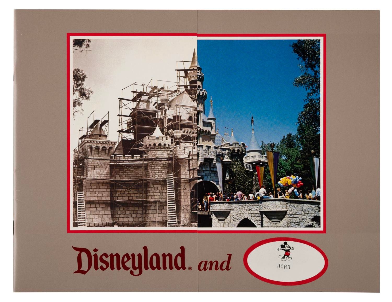 (Disneyland, 1981-82) A Cast Member "Welcome to Disneyland" guidebook published by Disney University to educate new hires on the policies, practices, and procedures of Disneyland. This booklet displays the original recipient's name on the cover in the bottom-right corner, and a personalized company thank-you letter enclosed within. Measuring 8.5" x 11", the book and letter are in very good condition with light wear from use.