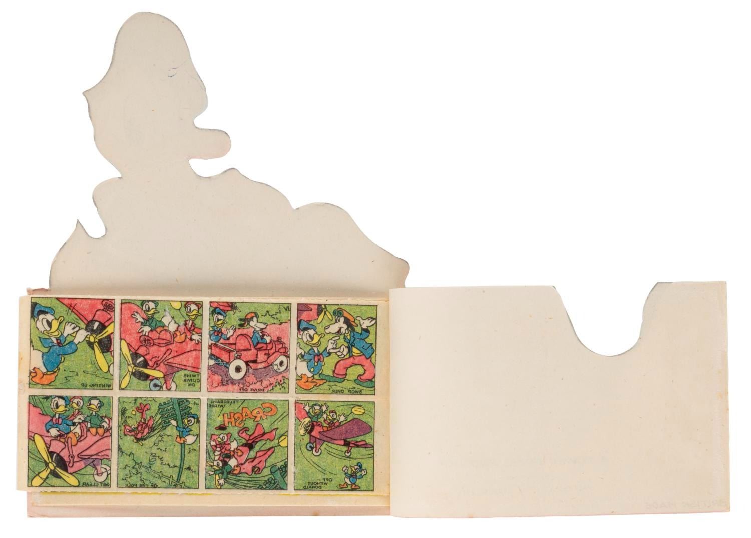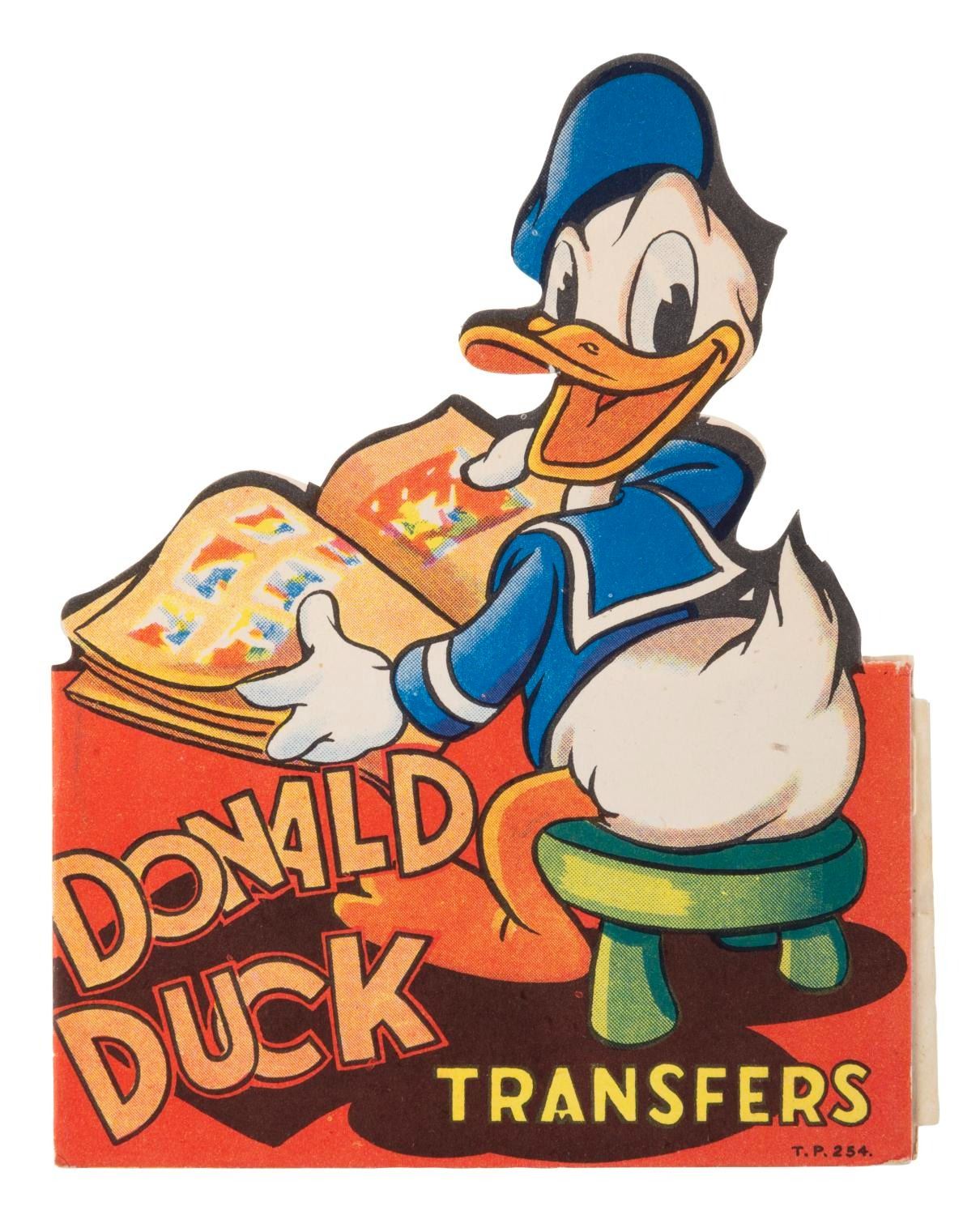 (Tower Press, 1950s) A Donald Duck transfers book of temporary tattoos, by Tower of Britain. Measuring 6.25" x 4.75", the book displays in very good condition, with two of the interior transfer pages slightly stuck together.