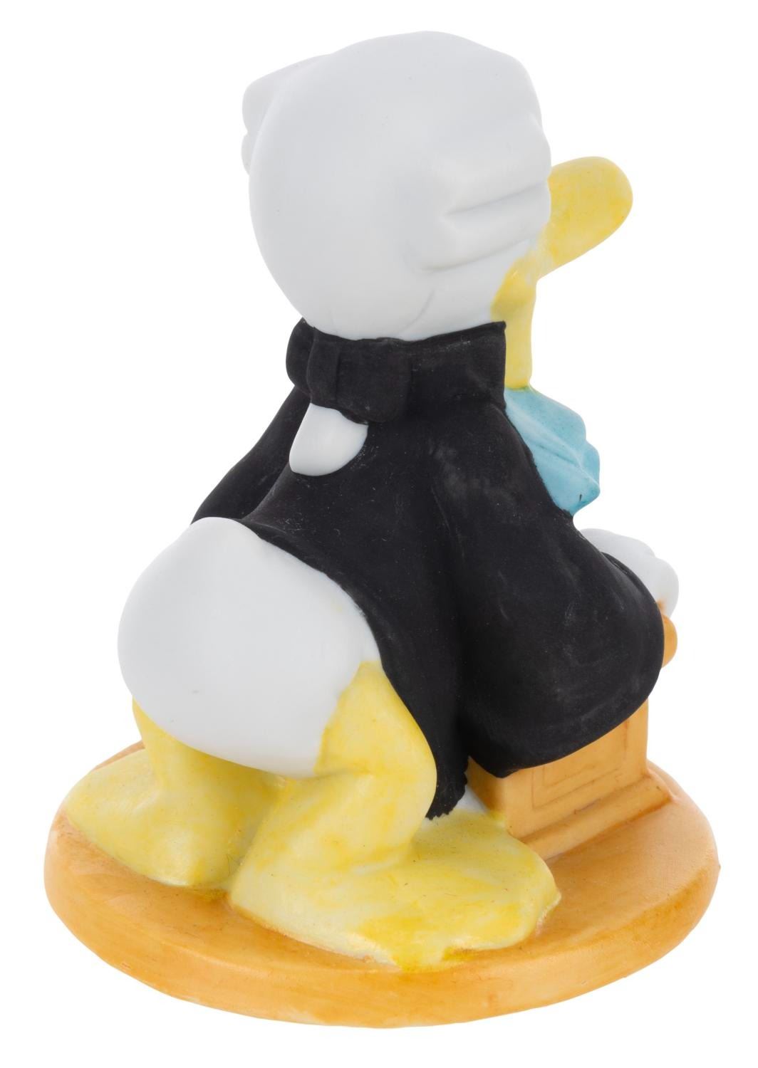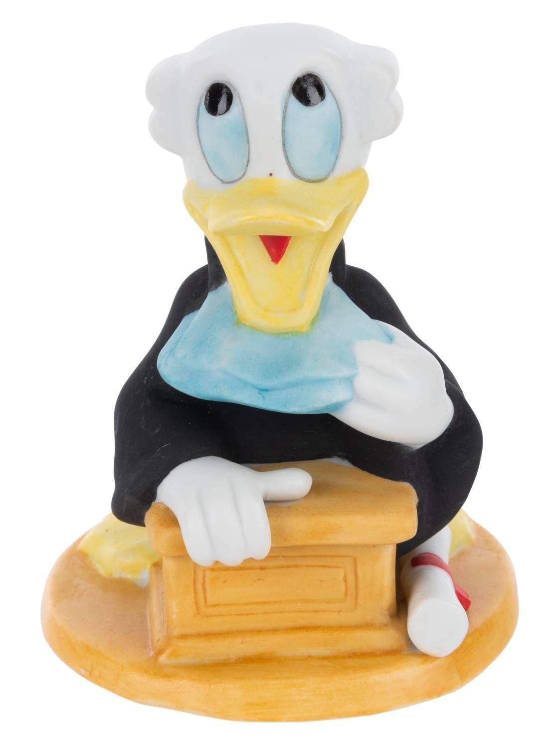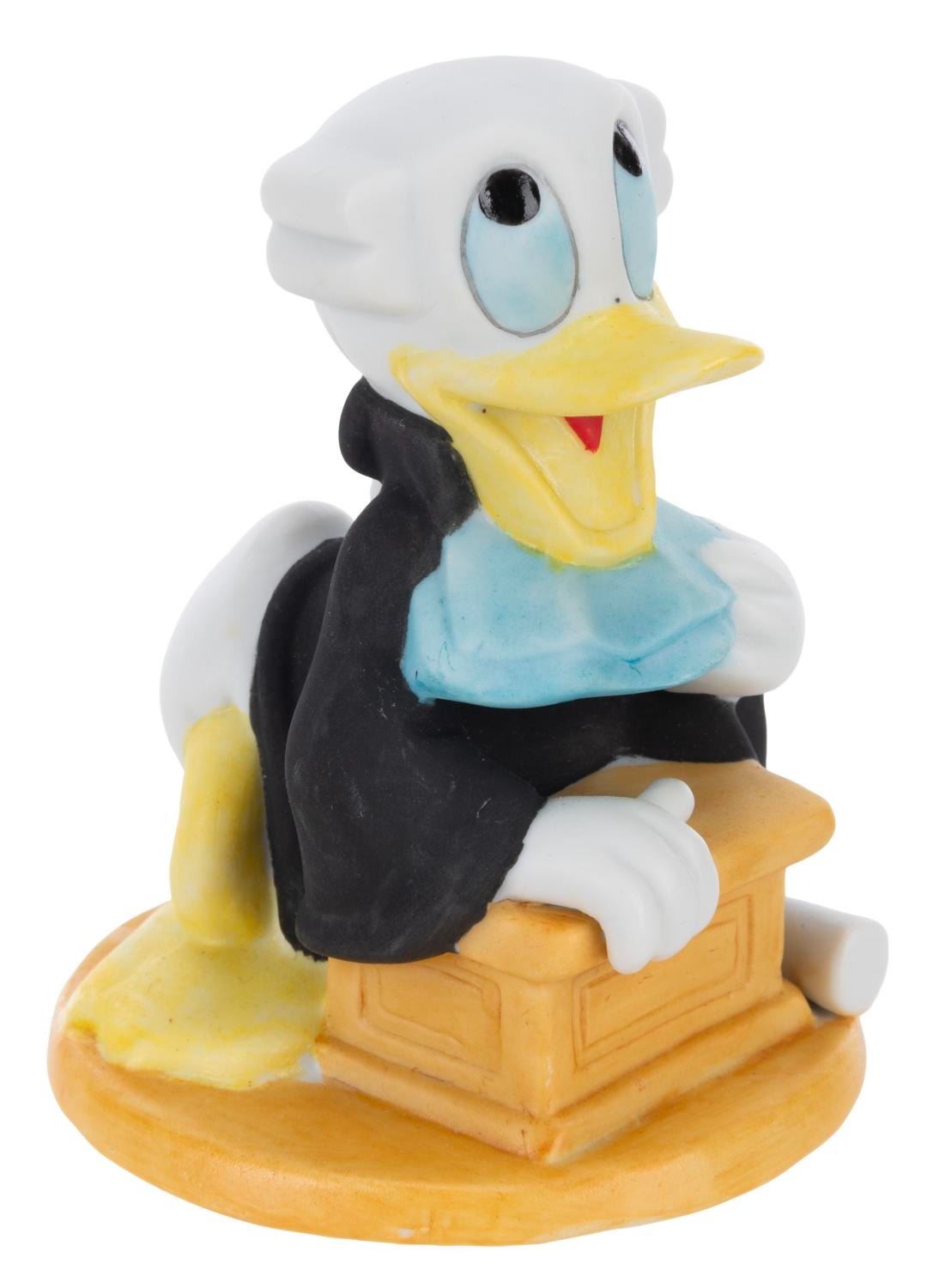 (Disney, 1980s-90s) A ceramic Donald Duck dressed as a lawyer. Donald measures 3.75" tall and is in very good condition with minimal scuffing and defects to the matte finish.